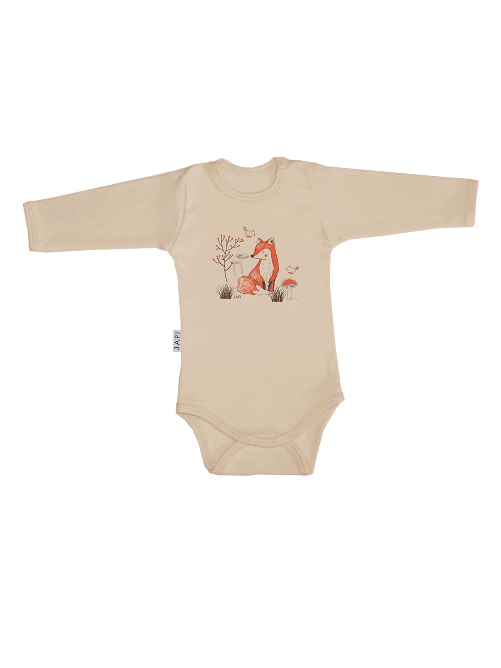 Az 1F hosszú ujjú baba body a WILD kollekcióból egyszerű és elegáns dizájnt kínál, aranyos róka motívummal. A kiváló minőségű pamut garantálja a kényelmet és a puhaságot, míg a praktikus patentos záródás megkönnyíti a napi gondozást a baba számára.