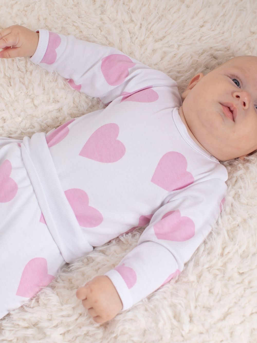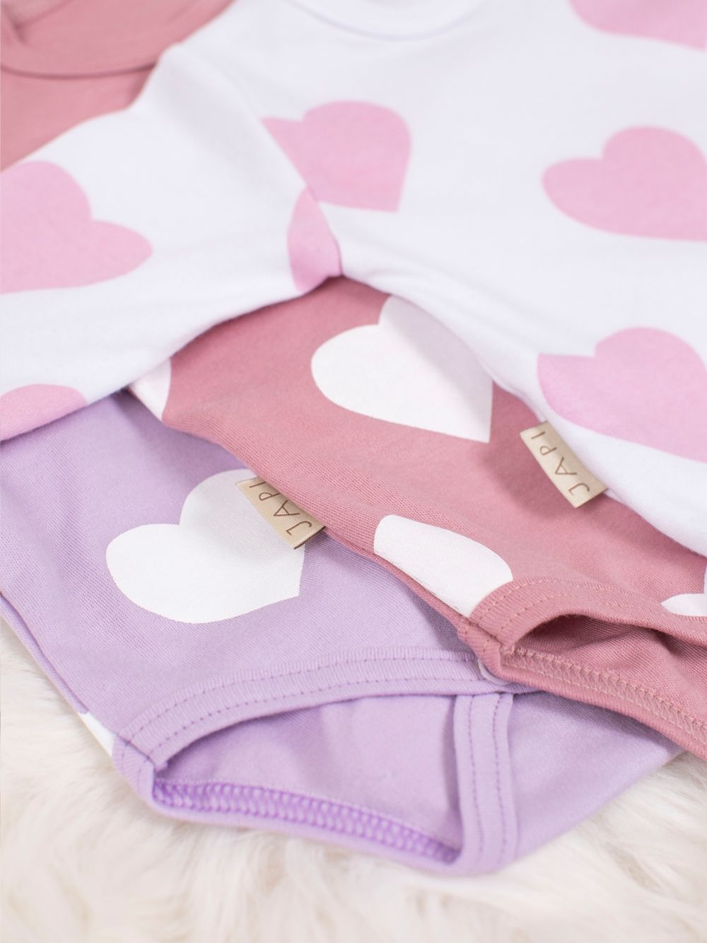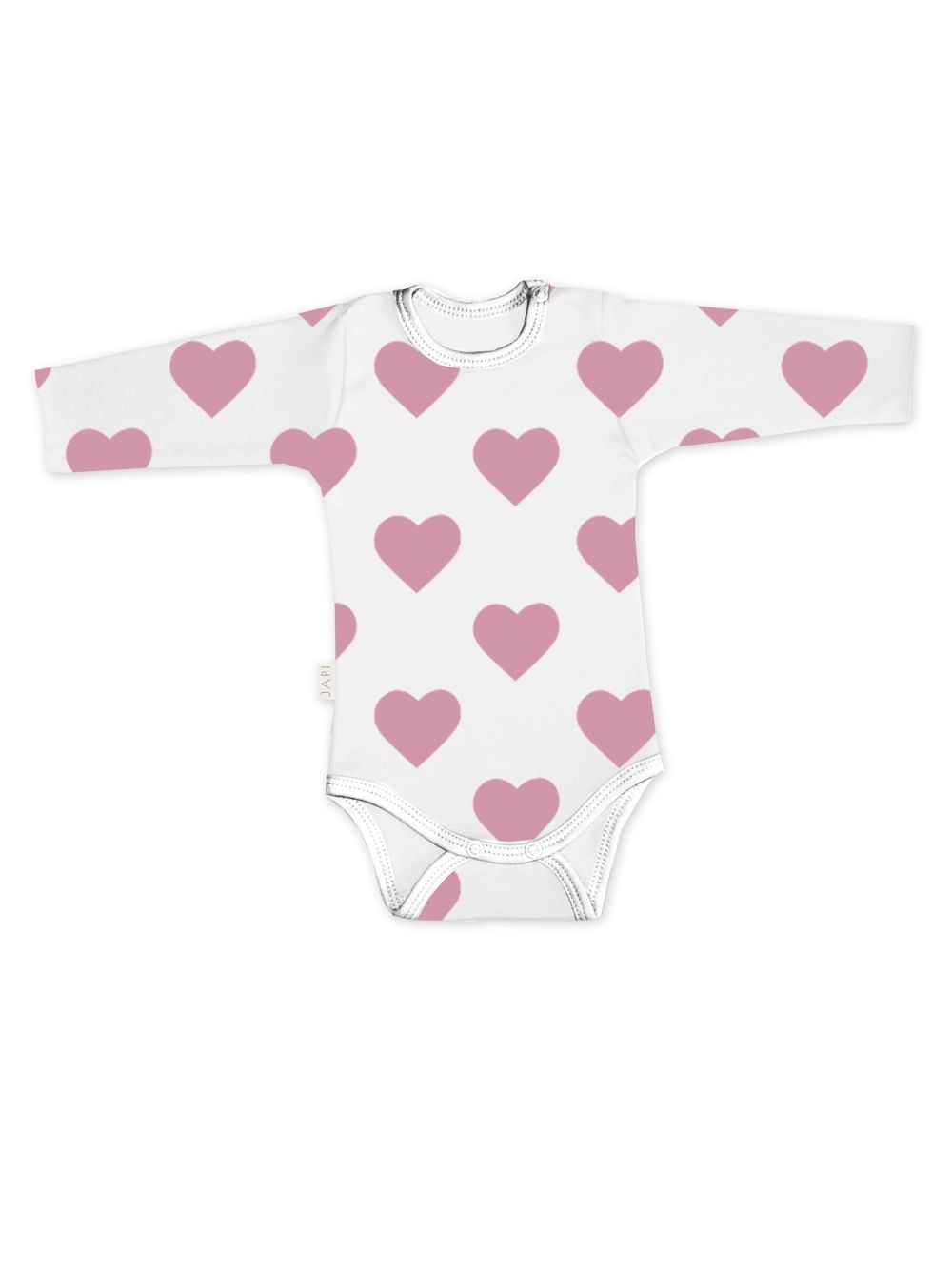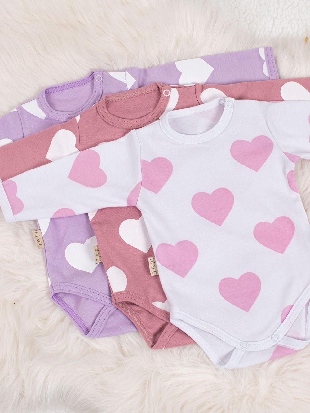 Ez a lány bababody tökéletes a mindennapi viselethez kellemes és puha anyagának köszönhetően. A gyönyörű szívecskés mintával a babája bájosan fog kinézni. A body hosszú ujjú, és praktikus patentokkal rendelkezik a lábak között a könnyű pelenkázás érdekében. Három színben kapható: fehér, lila és rózsaszín.