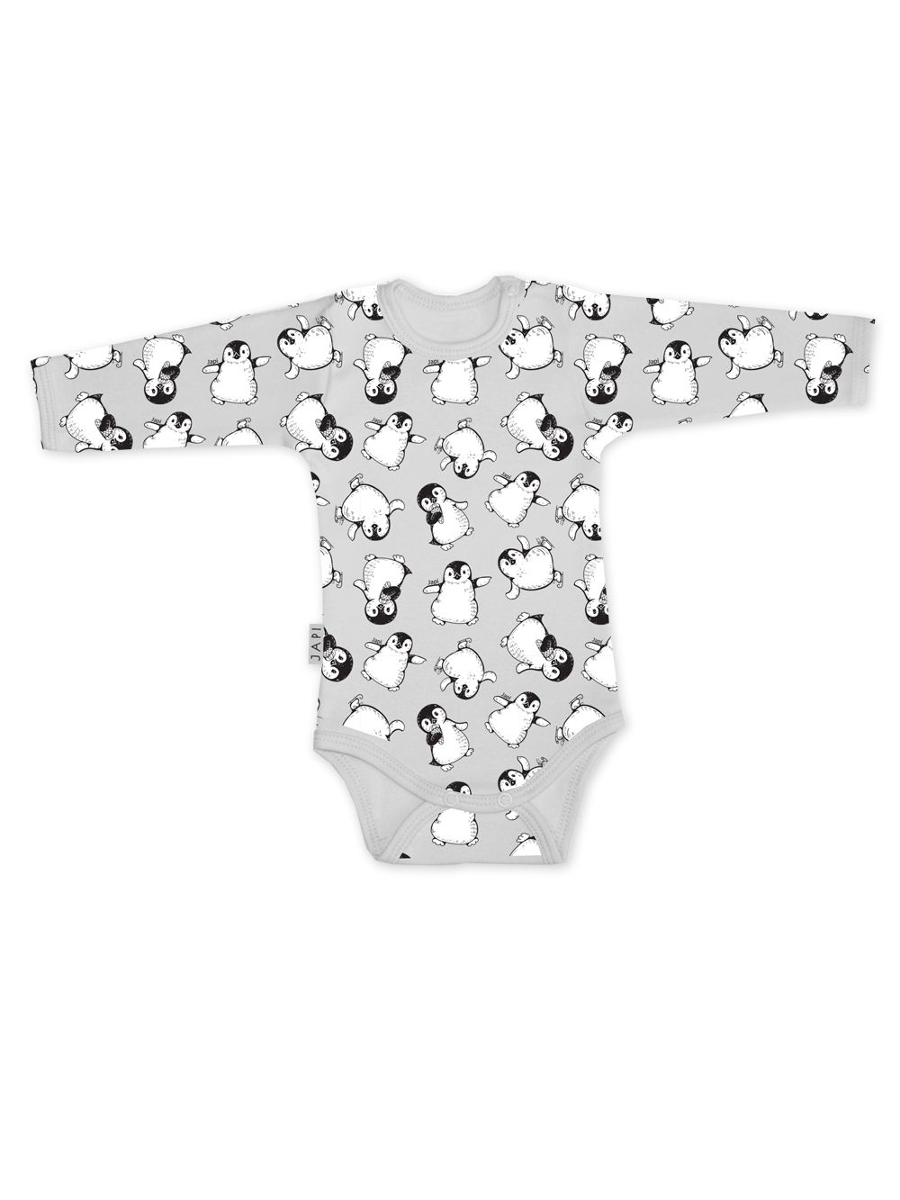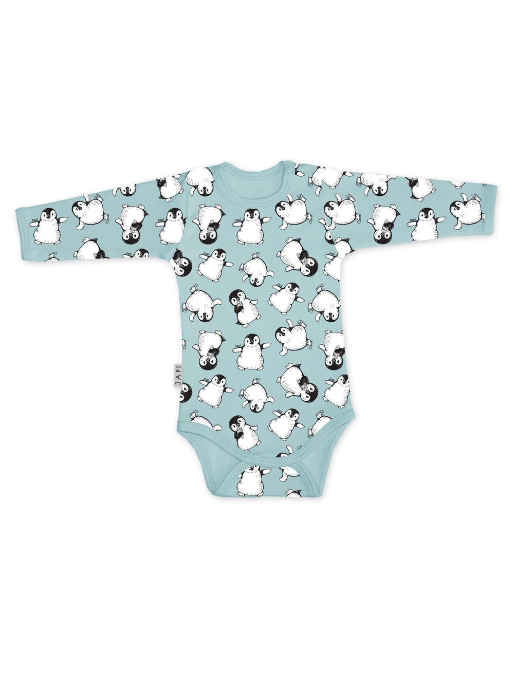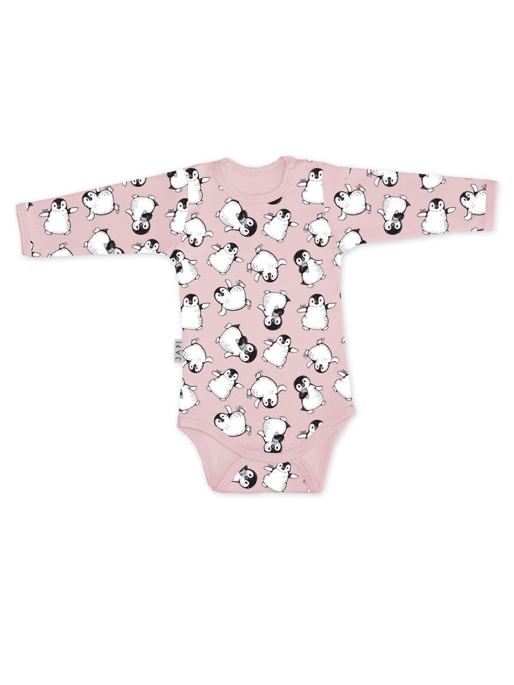 Ez a vidám pingvin mintás hosszú ujjú body tökéletes választás a babák számára. Kellemes és puha anyagból készült, amely kíméletes a baba bőréhez, és egész napos kényelmet biztosít. A dizájn stílusos és játékos, ideális a mindennapi viseletre, valamint különleges alkalmakra is. A PINGUINE body egyszerű patentos záródással rendelkezik a lábak között, ami megkönnyíti a pelenkázást. Ez a darab többféle pasztell színben elérhető, mindegyik aranyos pingvin mintákkal díszítve. Tökéletes mindennapi viseletre vagy ajándéknak is kiváló.