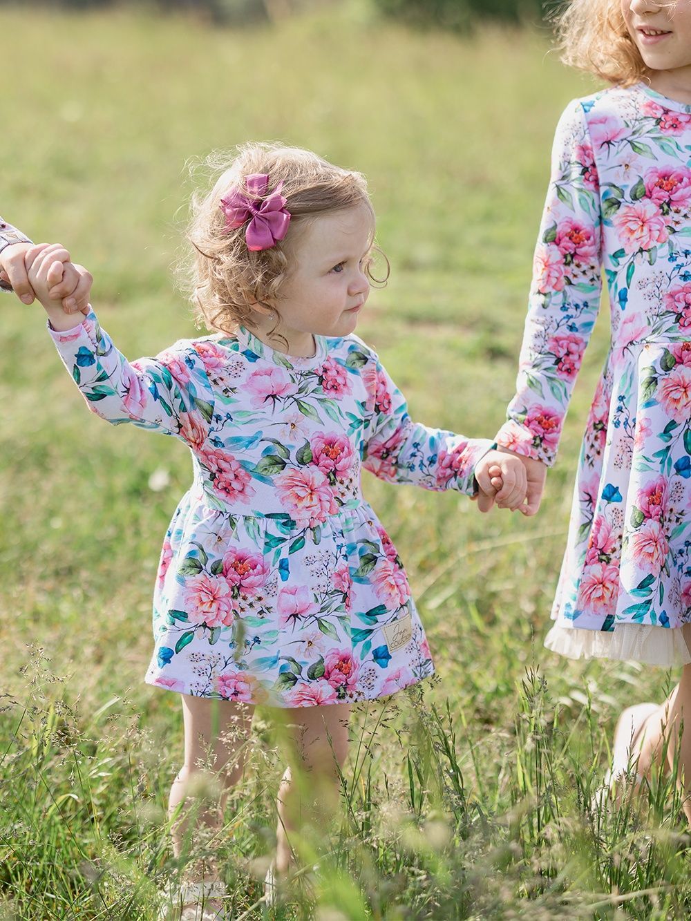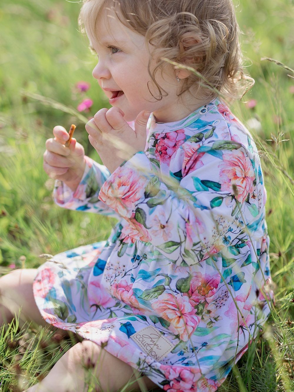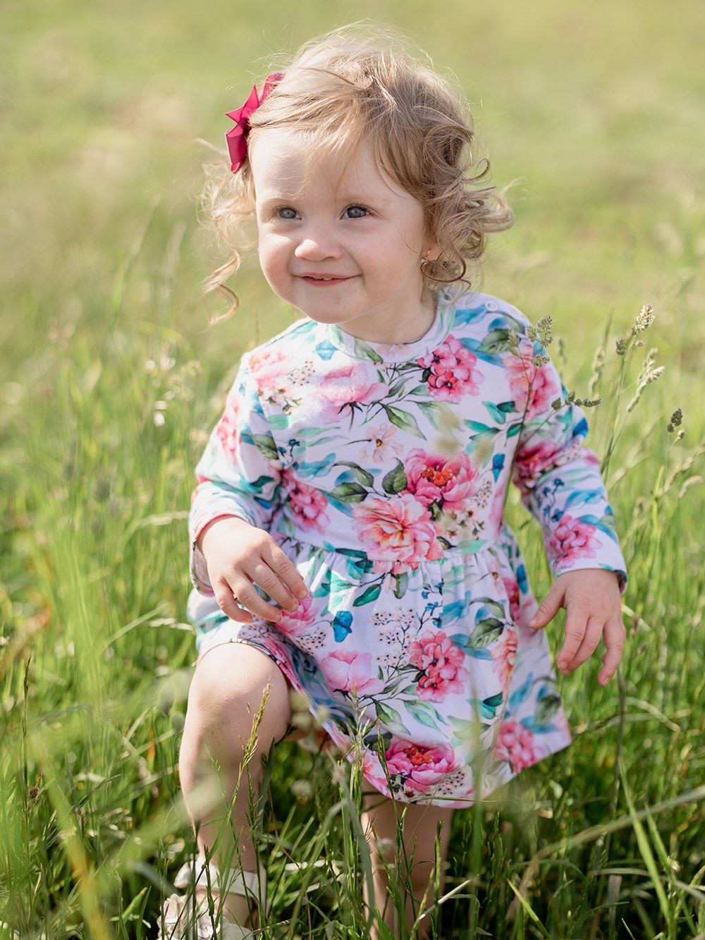 A body ruhákat a legkisebb hölgyeknek terveztük. Virágmintás pamutszövetből készítettük őket. A fehér alapon gyönyörűen kiemelkednek a bazsarózsa virágok és a zöld levelek. Gyengédnek és romantikusnak tűnnek. A szabás nagyon praktikus és kényelmes. Minőségi szegélyük van, amely nem nyomja és nem karcolja a gyerekeket. A szoknya a derékrészen varrott, alatta a body alsó része található. A patentos rögzítésnek köszönhetően könnyű a pelenkázás.