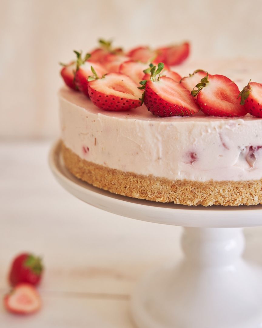 - Rétegezzük a krémet a korpuszra, és díszítsük eperrel. Tegyük ismét hűtőbe legalább két órára. Ha a sajttorta megdermedt és kihűlt, már tálalható is :)