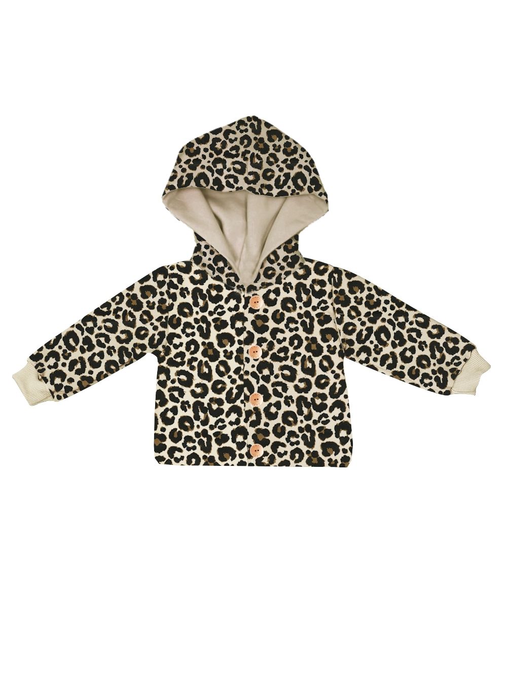 Ez a stílusos kapucnis gyerek pulóver leopárdmintával tökéletes választás a kis felfedezők számára. A pulóver puha, lélegző anyagból készült, amely egész napos kényelmet biztosít. A bélelt kapucni extra védelmet nyújt a szél és a hideg ellen, míg a praktikus fa gombos zárás megkönnyíti az öltözködést. A rugalmas ujjpasszék biztosítják, hogy a pulóver jól illeszkedjen és ne csússzon fel. A feltűnő leopárdminta játékos és egyedi megjelenést kölcsönöz a ruhadarabnak. Remek választás őszi sétákhoz, kirándulásokhoz vagy mindennapi viseletként – egy igazán stílusos megjelenésért.