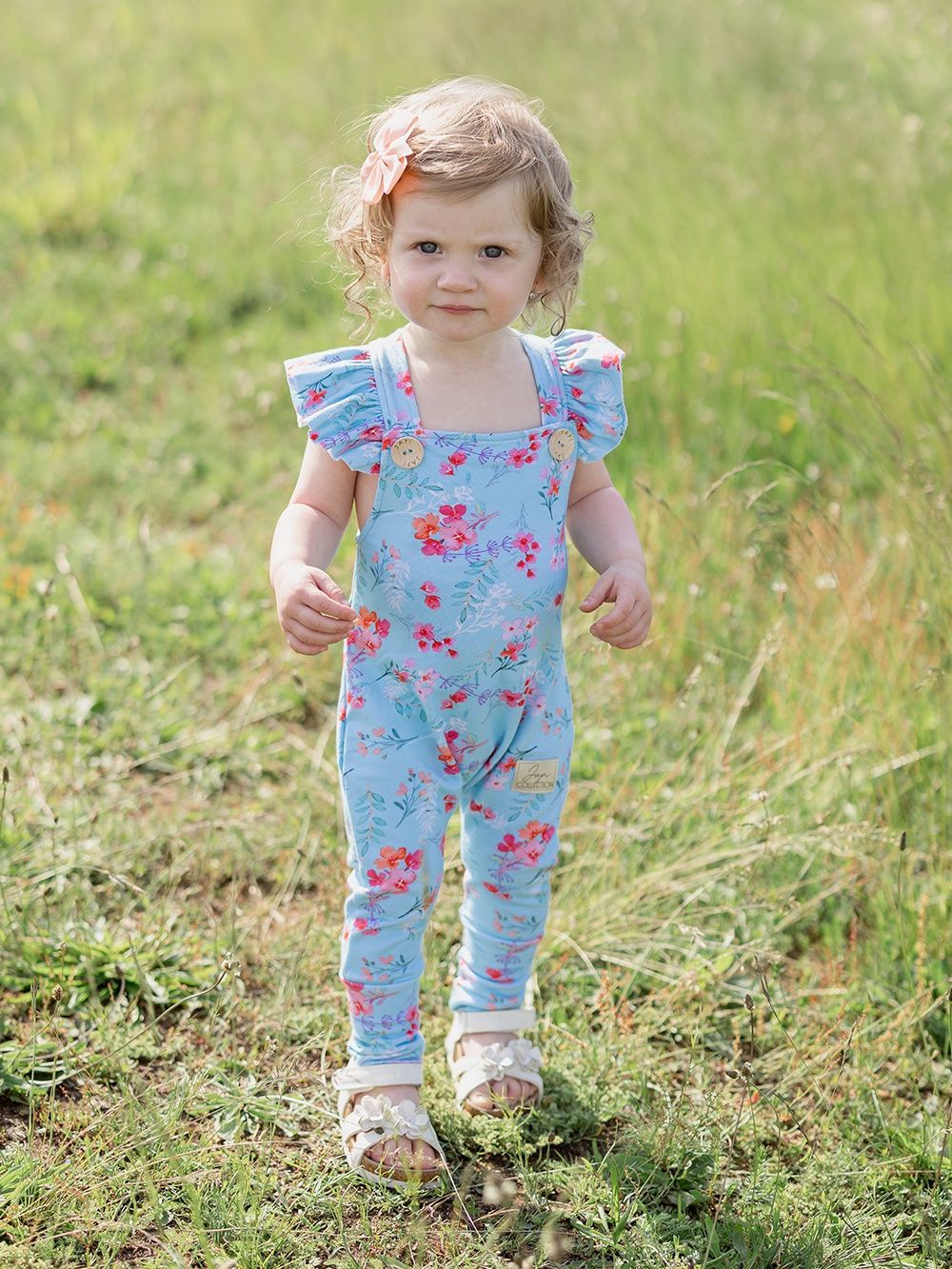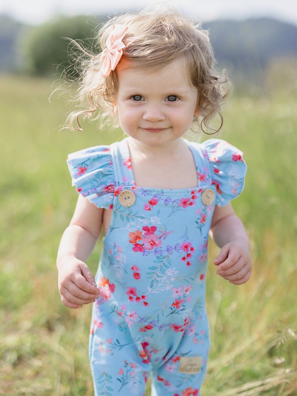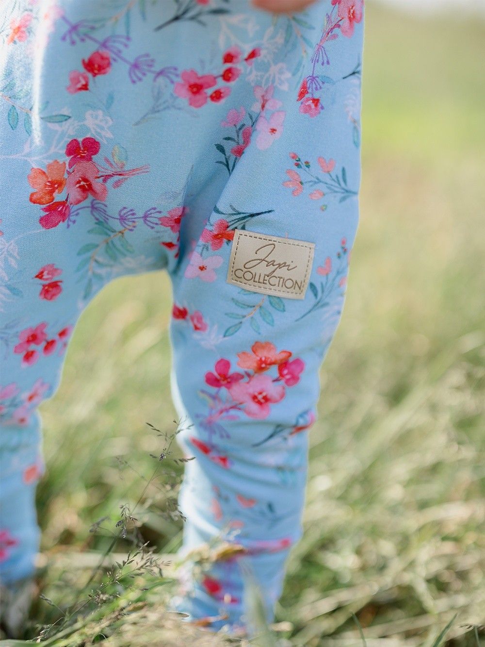 Kényelmes kantáros melegítőnadrág, amelyet mindennapokra és különleges alkalmakra is használhat. A melegítőnadrágot kellemes pamutszövetből varrtuk, tanúsítvánnyal, így már születéstől kezdve alkalmas a gyermekek számára. A szabás a pelenkás babákhoz is igazodik. A pántokon, elöl a fa gomboknak köszönhetően rögzíthető, amelyek egyedi megjelenést kölcsönöznek ennek a darabnak. A világoskék háttérre finom virágok vannak nyomtatva. A melegítőnadrág alján szélesebb elasztikus gumik találhatók, így a gyermekeket nem nyomja, hanem a helyén tartja.