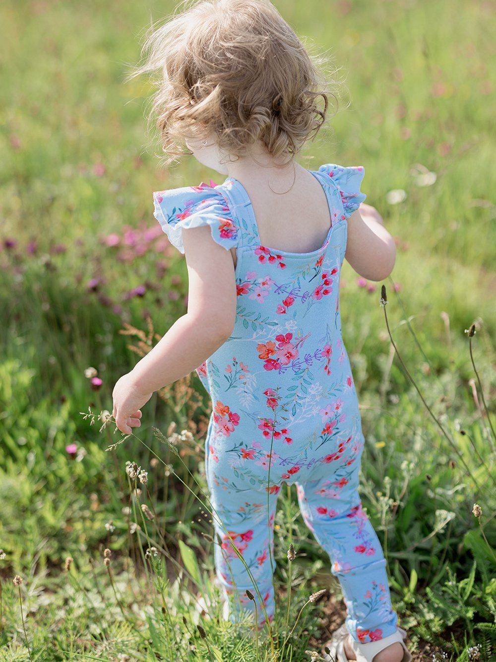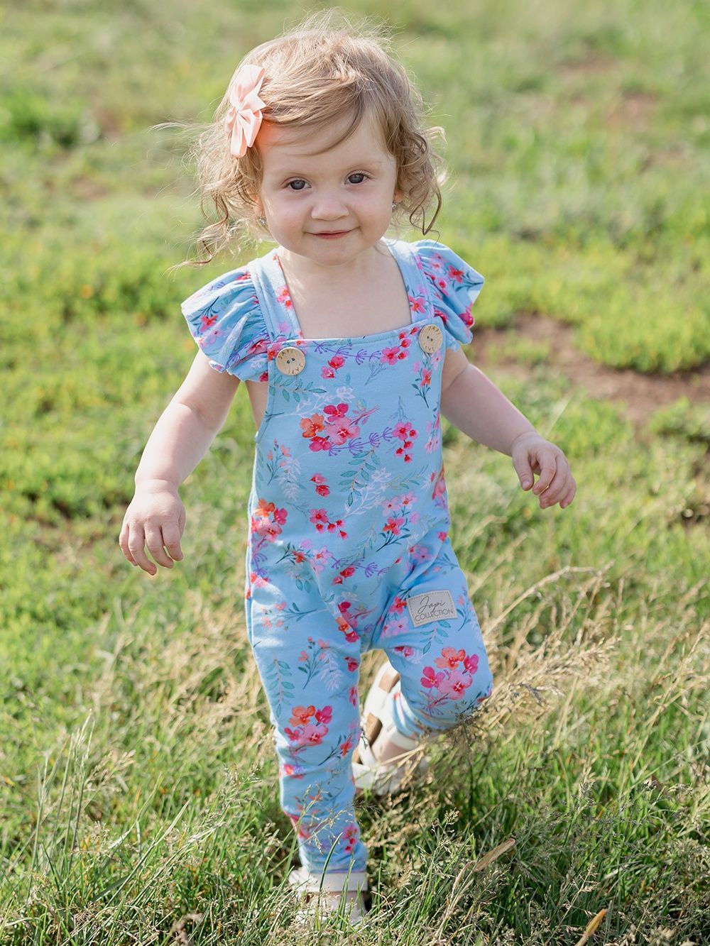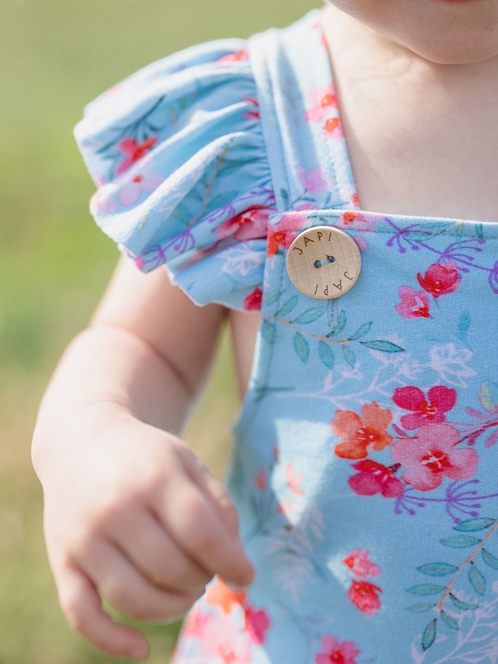 Kényelmes kantáros melegítőnadrág, amelyet mindennapokra és különleges alkalmakra is használhat. A melegítőnadrágot kellemes pamutszövetből varrtuk, tanúsítvánnyal, így már születéstől kezdve alkalmas a gyermekek számára. A szabás a pelenkás babákhoz is igazodik. A pántokon, elöl a fa gomboknak köszönhetően rögzíthető, amelyek egyedi megjelenést kölcsönöznek ennek a darabnak. A világoskék háttérre finom virágok vannak nyomtatva. A melegítőnadrág alján szélesebb elasztikus gumik találhatók, így a gyermekeket nem nyomja, hanem a helyén tartja.