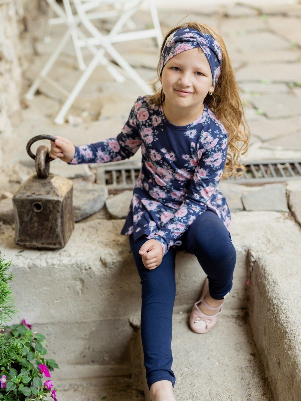 A kínálatunkban lévő népszerű leggingst is beépítettük ebbe a kollekcióba. Sötétkék és rózsaszín színeket választottunk. A leggings kényelmes pamut anyagból készült. Kényelmes dereka van. Gyönyörűen kombinálható például ebből a kollekcióból egy pólóval vagy tunikával.