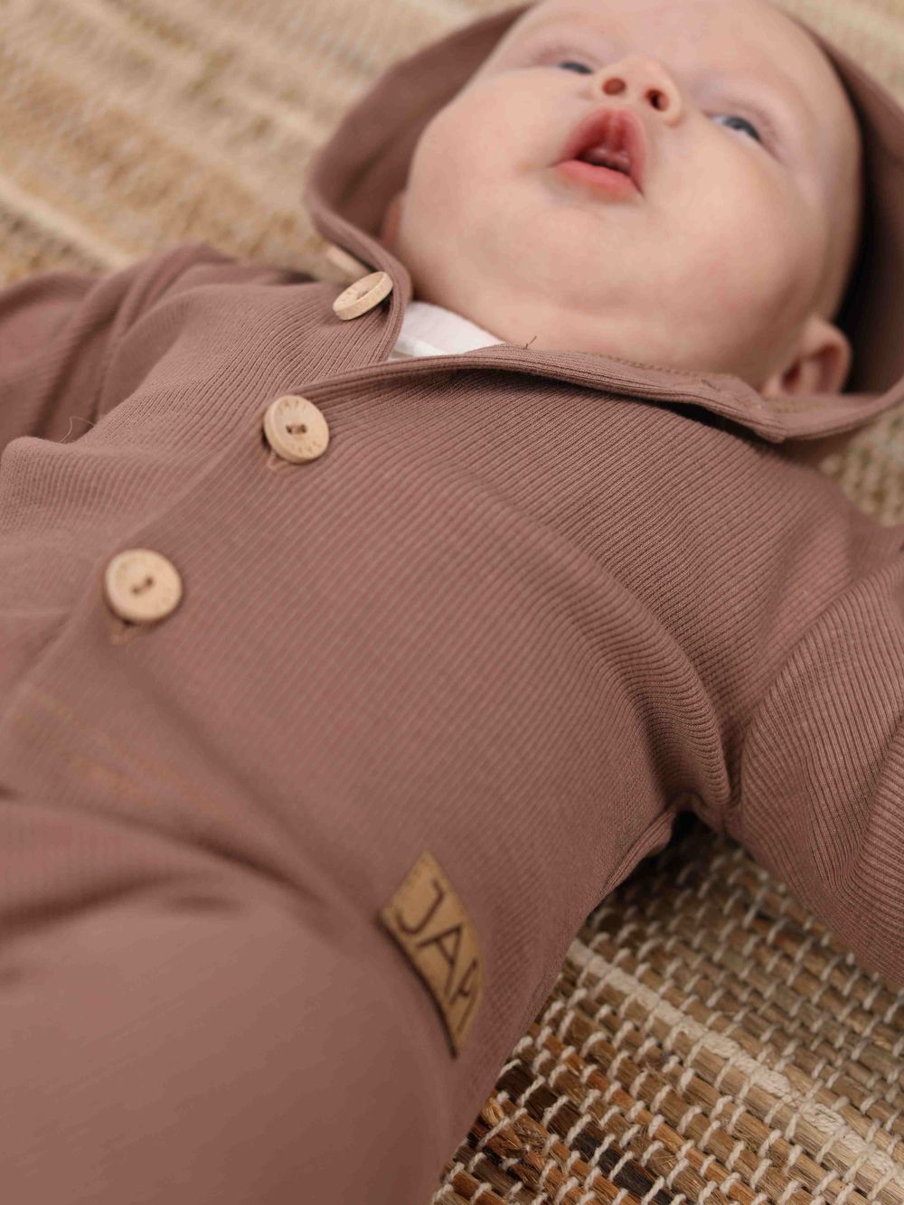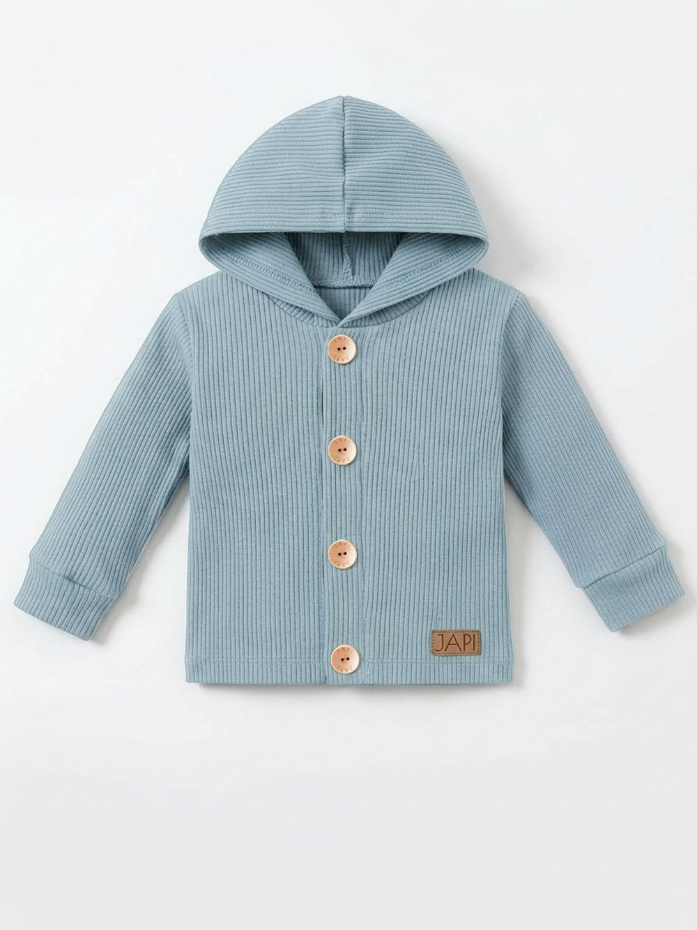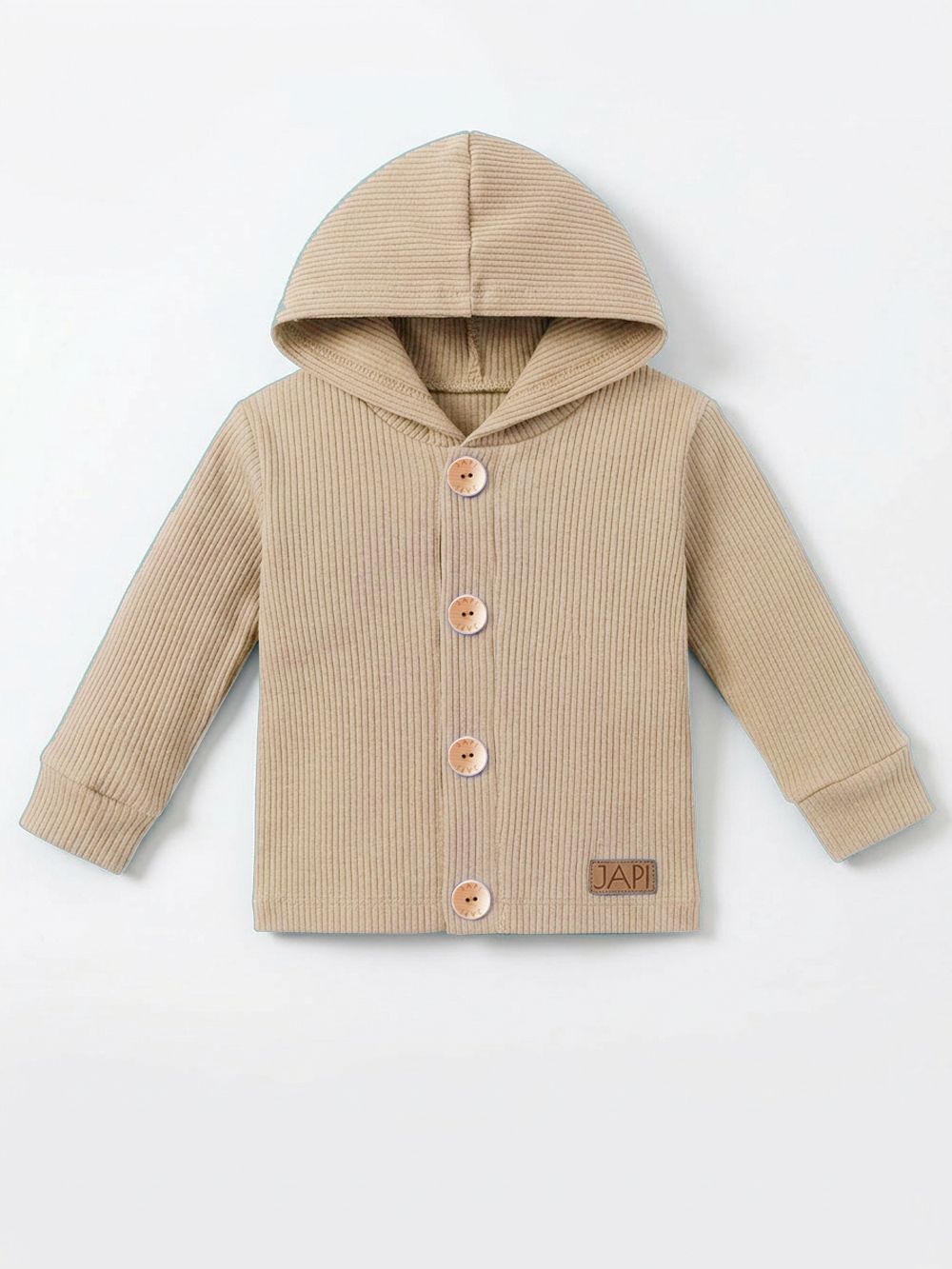 A felső 100% pamutból készült, és nagyon kényelmes. A kényelmes szabás minden nap használható. A kapucnis felső teljes hosszában fagombokkal rögzíthető. A hidegebb évszakban a praktikus kapucnit is használhatja. Három színben - bézs, kék és barna - találja meg.