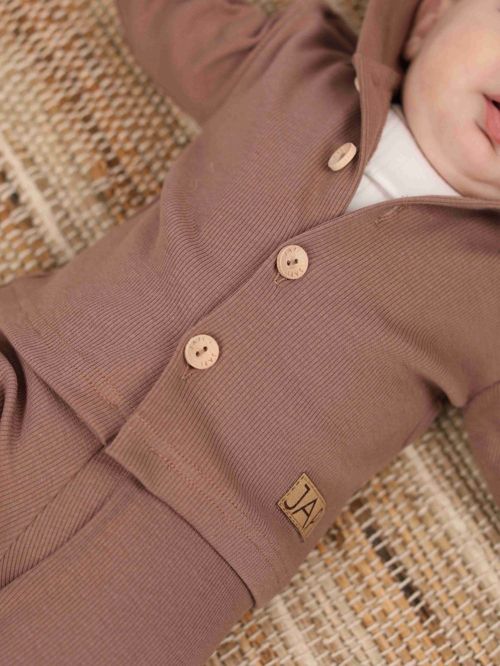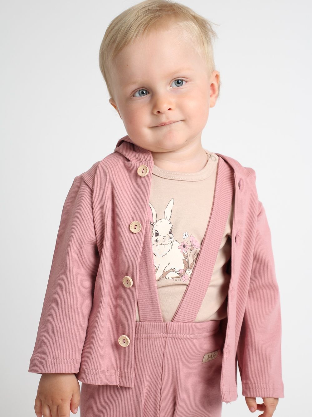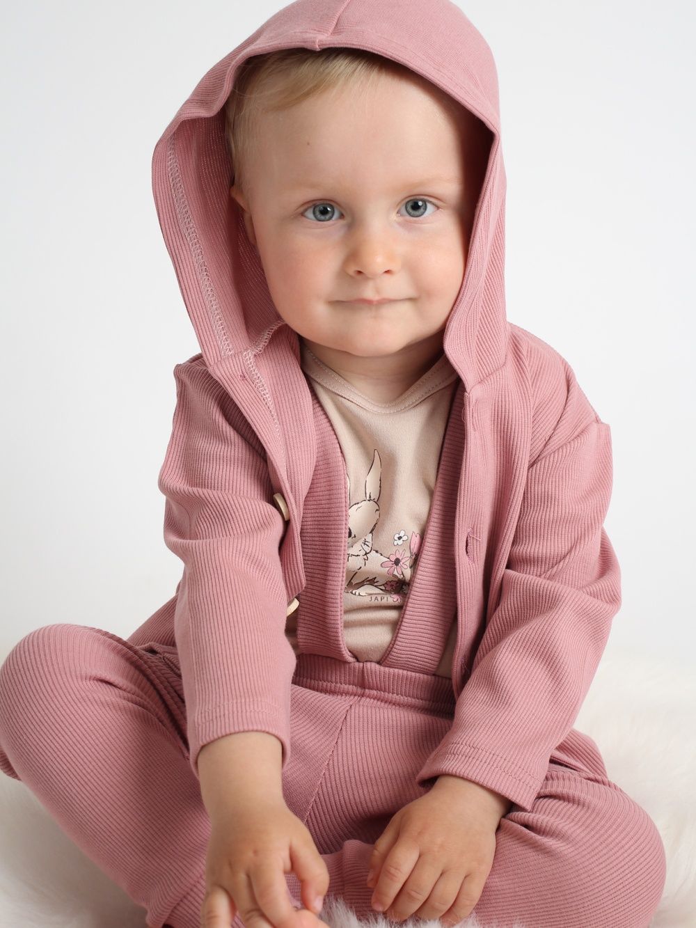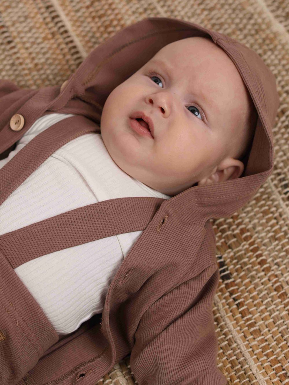 A felső 100% pamutból készült, és nagyon kényelmes. A kényelmes szabás minden nap használható. A kapucnis felső teljes hosszában fagombokkal rögzíthető. A hidegebb évszakban a praktikus kapucnit is használhatja. Három színben - bézs, kék és barna - találja meg.
