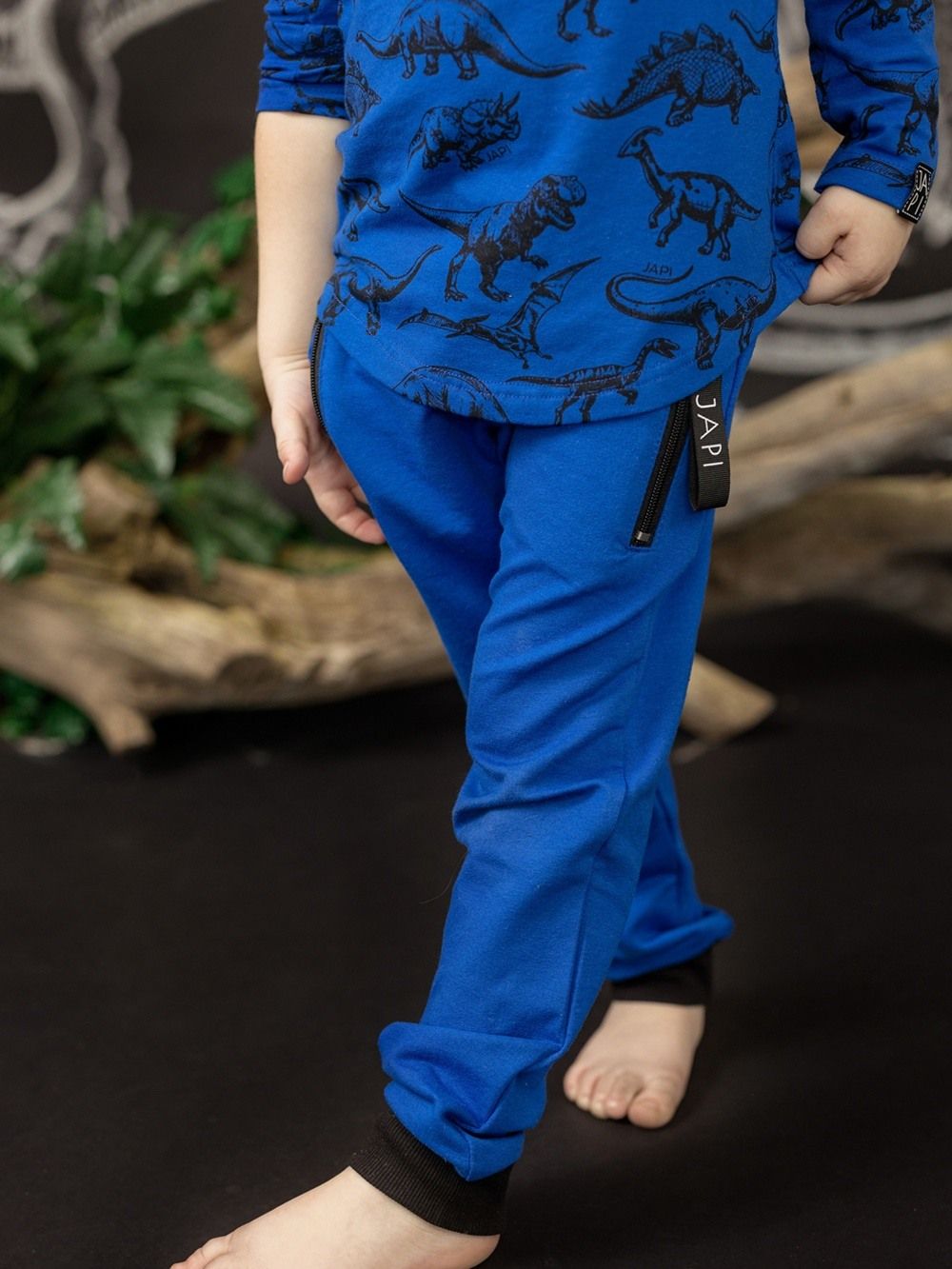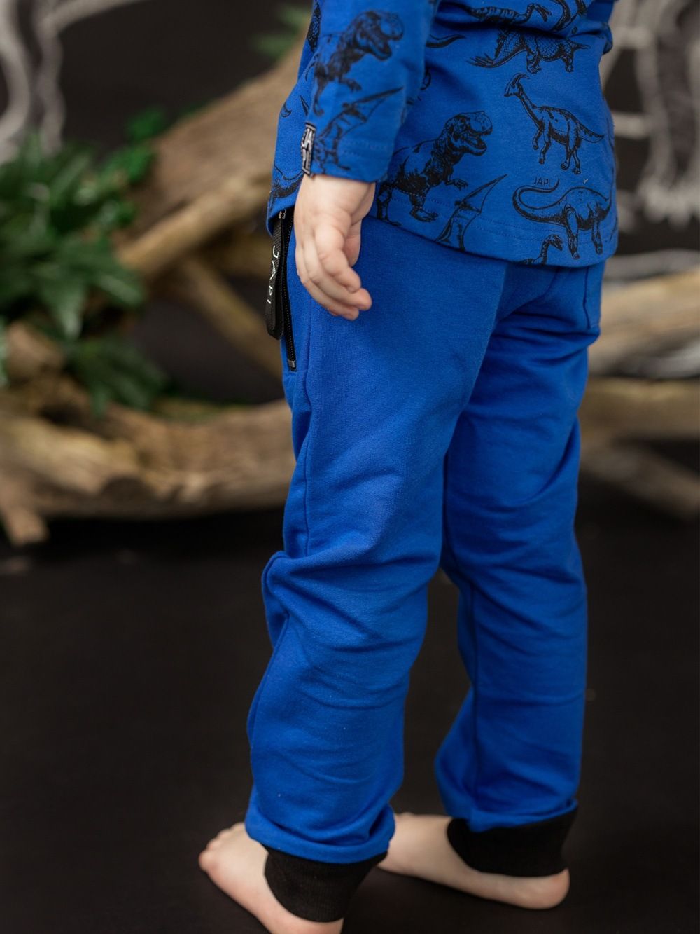 Fiú melegítőnadrág kényelmes szabással. A stílusos dizájnt fekete kiegészítők, mint a zsebeken lévő cipzár, a nadrágon lévő szegély és a rugalmas derékpánt élénkítik. A melegítőnadrágnak van egy hátsó zsebe is, amely alkalmas kulcsok vagy mobiltelefon elhelyezésére. A kellemes anyag nagyon könnyen viselhető, így mindennapokra vagy akár sétához is alkalmas.