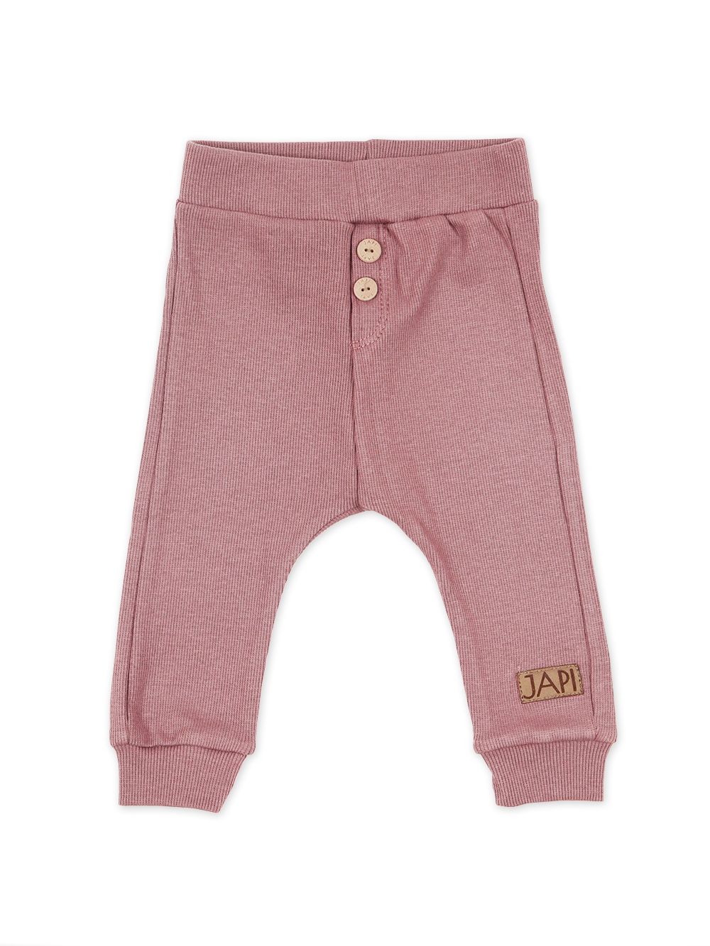A melegítőnadrág 100% pamut anyagból készült, három színben. Kényelmes szabásúak, szélesebb derékpánttal, rugalmas derékkal, amely nem nyom, hanem átöleli a pocakot és a helyén tartja a nadrágot. A melegítőnadrág alján gumik vannak, így nem fog felcsúszni a babának.