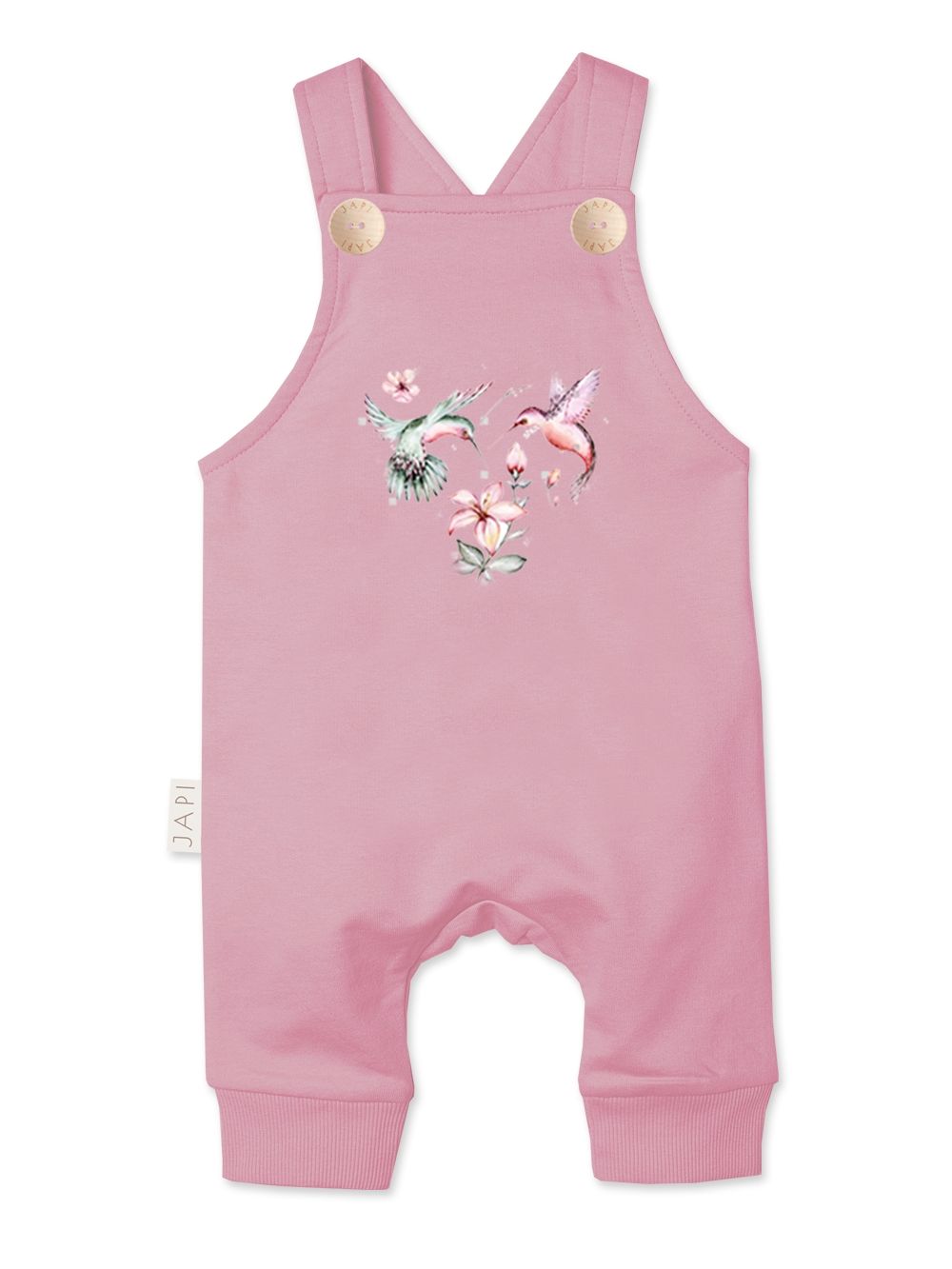 A BIRDS kantáros nadrág aranyos és praktikus darab a legkisebbek számára. Puha, kellemes és minőségi anyagból készült, amely egész nap maximális kényelmet biztosít. Az elejét gyönyörű madár- és virágminta díszíti, amely játékos és finom megjelenést kölcsönöz.