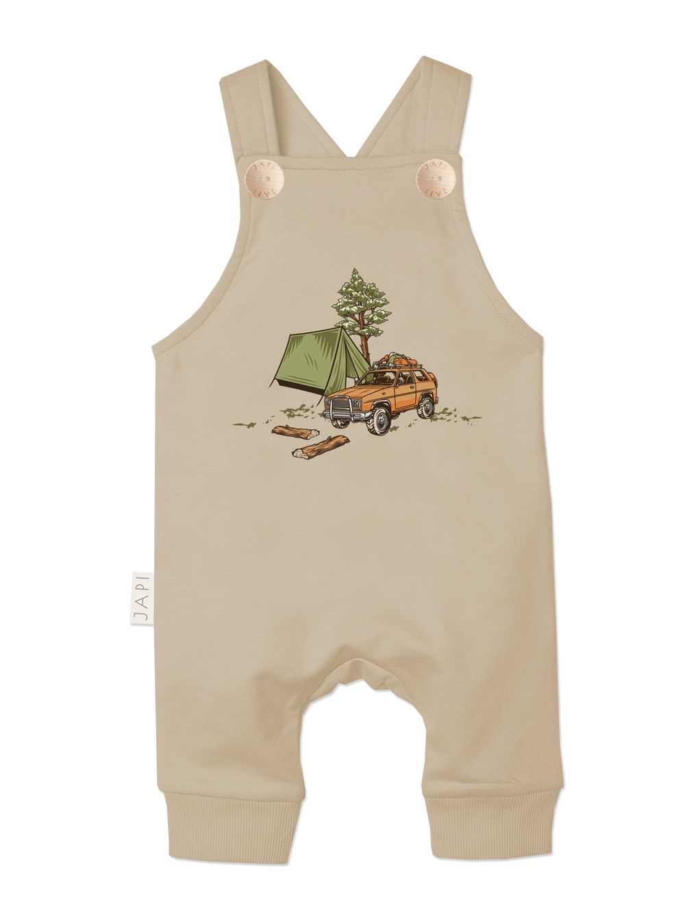 Ezek a kantáros gyerek melegítőnadrágok a CAMP kollekcióból tökéletes választásak kis felfedezőknek. Puha pamutból készültek, így maximális kényelmet és szabad mozgást biztosítanak. Az autó és sátor mintás dizájn játékos megjelenést ad az öltözéknek és fejleszti a gyerekek képzeletét. A gombos kantárok könnyű öltözködést tesznek lehetővé, míg a bokarészen lévő passzé jó tartást biztosít.