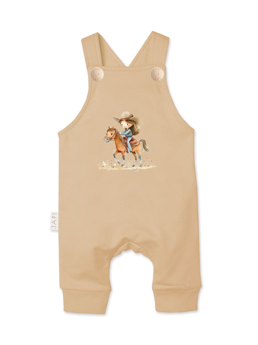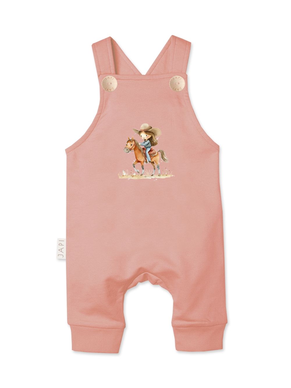 A WESTERN kantáros gyerekmelegítő nadrág játékos és praktikus darab, amely minden kis kalandor ruhatárában különleges helyet kap. Az elejét egy eredeti kislányt lóháton ábrázoló illusztráció díszíti, amely egyedi western hangulatot kölcsönöz a nadrágnak. A gombos kantár megkönnyíti az öltözködést és a levételt, miközben biztosítja, hogy a ruha egész nap kényelmesen a helyén maradjon. A bővebb szabás maximális mozgásszabadságot ad, míg a rugalmas passzék a nadrág száránál gondoskodnak róla, hogy a nadrág a helyén maradjon és védjen a hidegtől. Puha, kellemes tapintású anyagból készült, amely kíméletes az érzékeny gyermekbőrhöz. Három modern árnyalatban kapható – világosbarna, púderrózsaszín és friss zöld –, így könnyen kombinálható bodyval, pólóval vagy pulcsival. Ideális választás mindennapi viseletre, játékhoz és családi pillanatokhoz a kényelem jegyében.