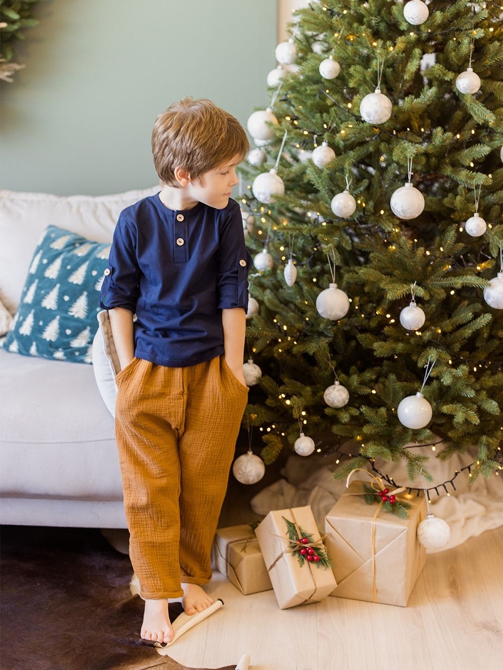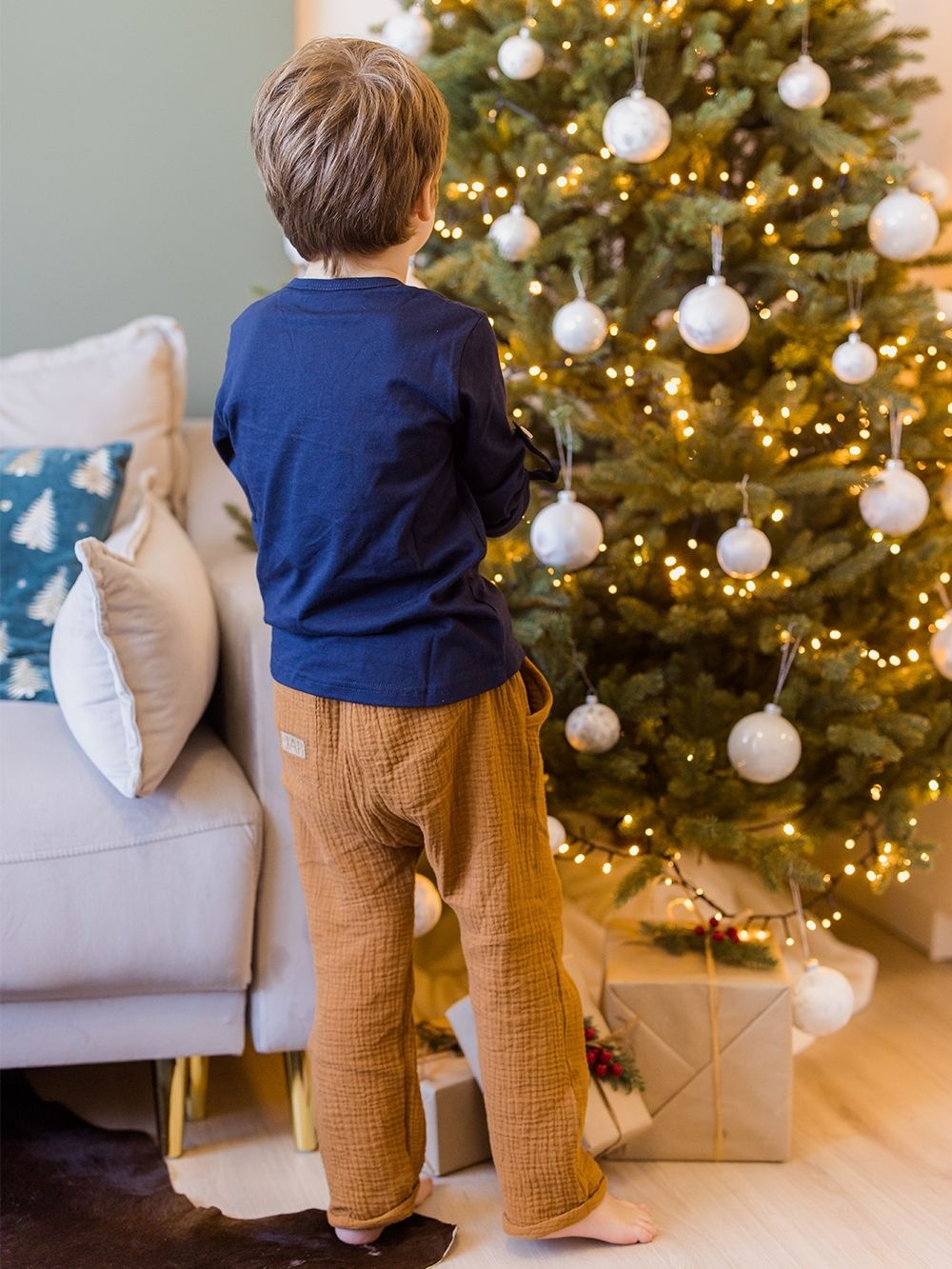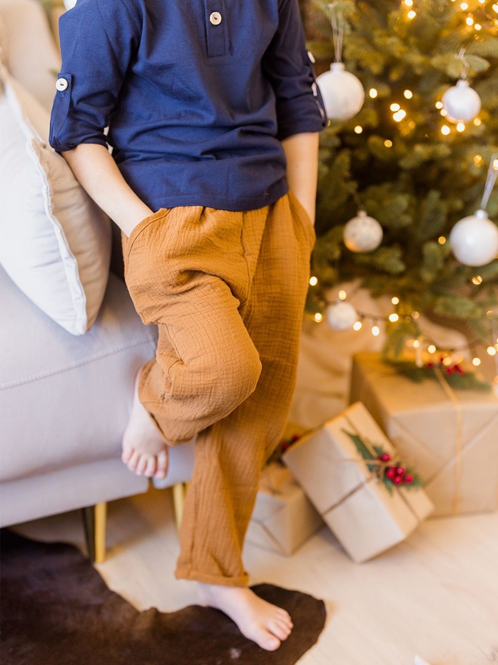 Öltöztesse kicsinyeidet kellemes anyagba és kényelmes szabású nadrágba. A muszlin gyereknadrágok alkalmasak a mindennapi életre és a családi ünnepekre. A puha, 100% pamut muszlin kellemes a nyári melegben és egy harisnyával együtt a hidegebb napokon is. Praktikus zsebek egészítik ki őket az apró kincsek számára.