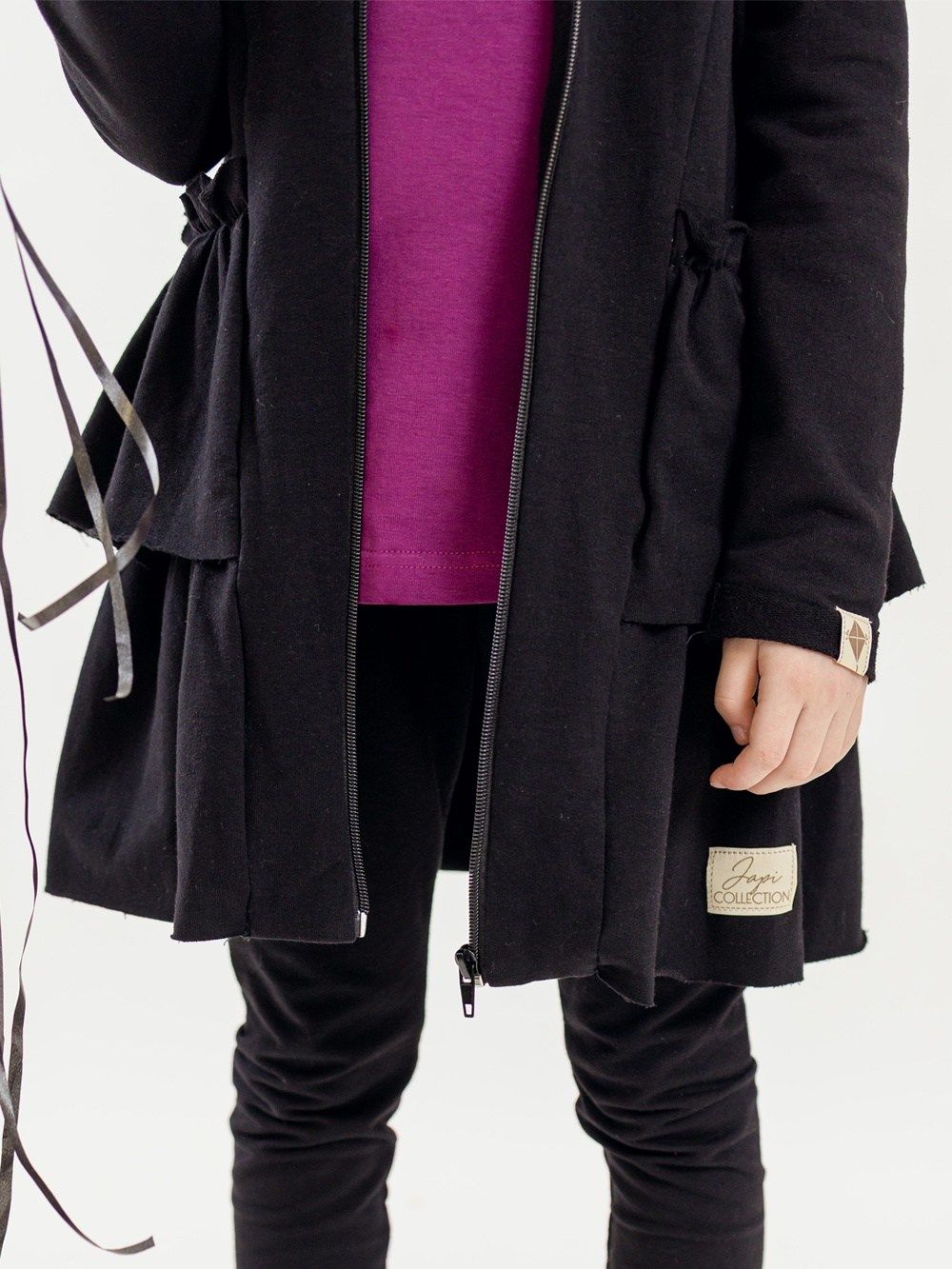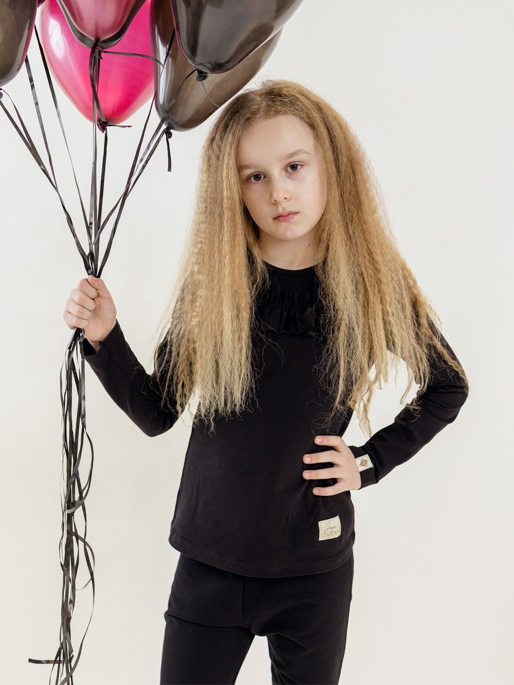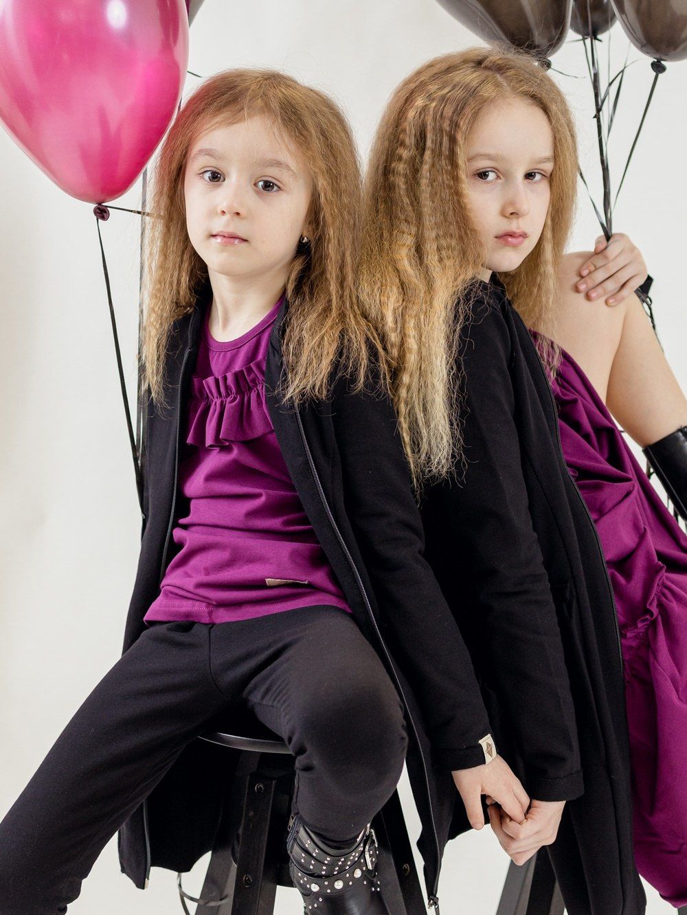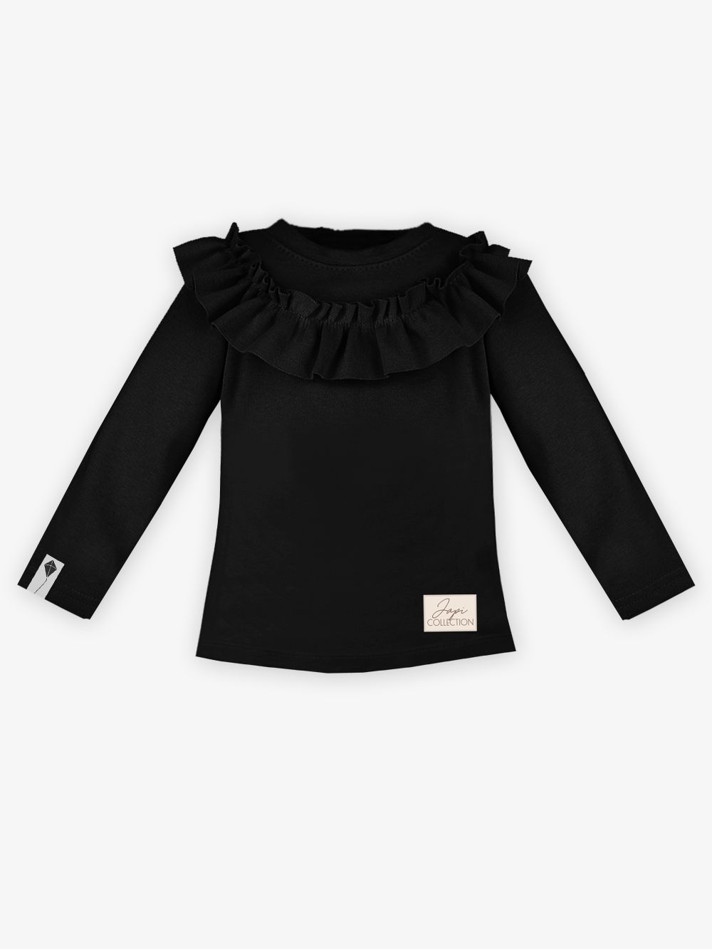 Ennek a szép pólónak a tetején díszes fodrokat helyeztünk el. A póló elegánsan néz ki, és alkalmas szoknyával vagy leggingsszel való kombinálásra. Használja családi összejövetelekhez vagy ünnepi alkalmakhoz. Fekete és lila színben található.