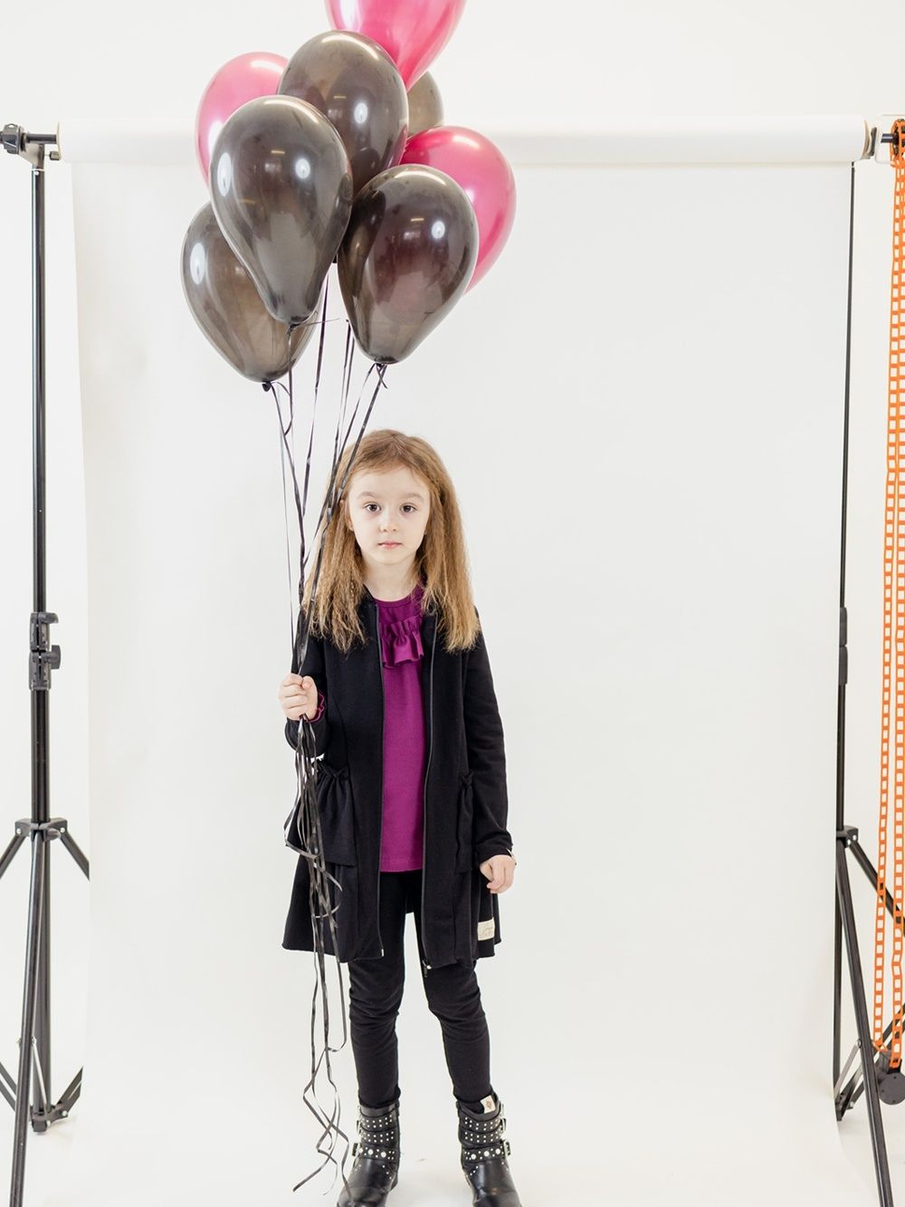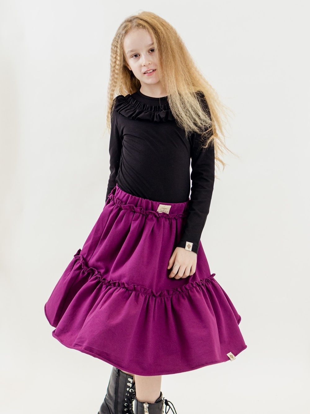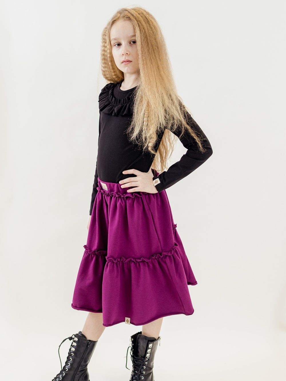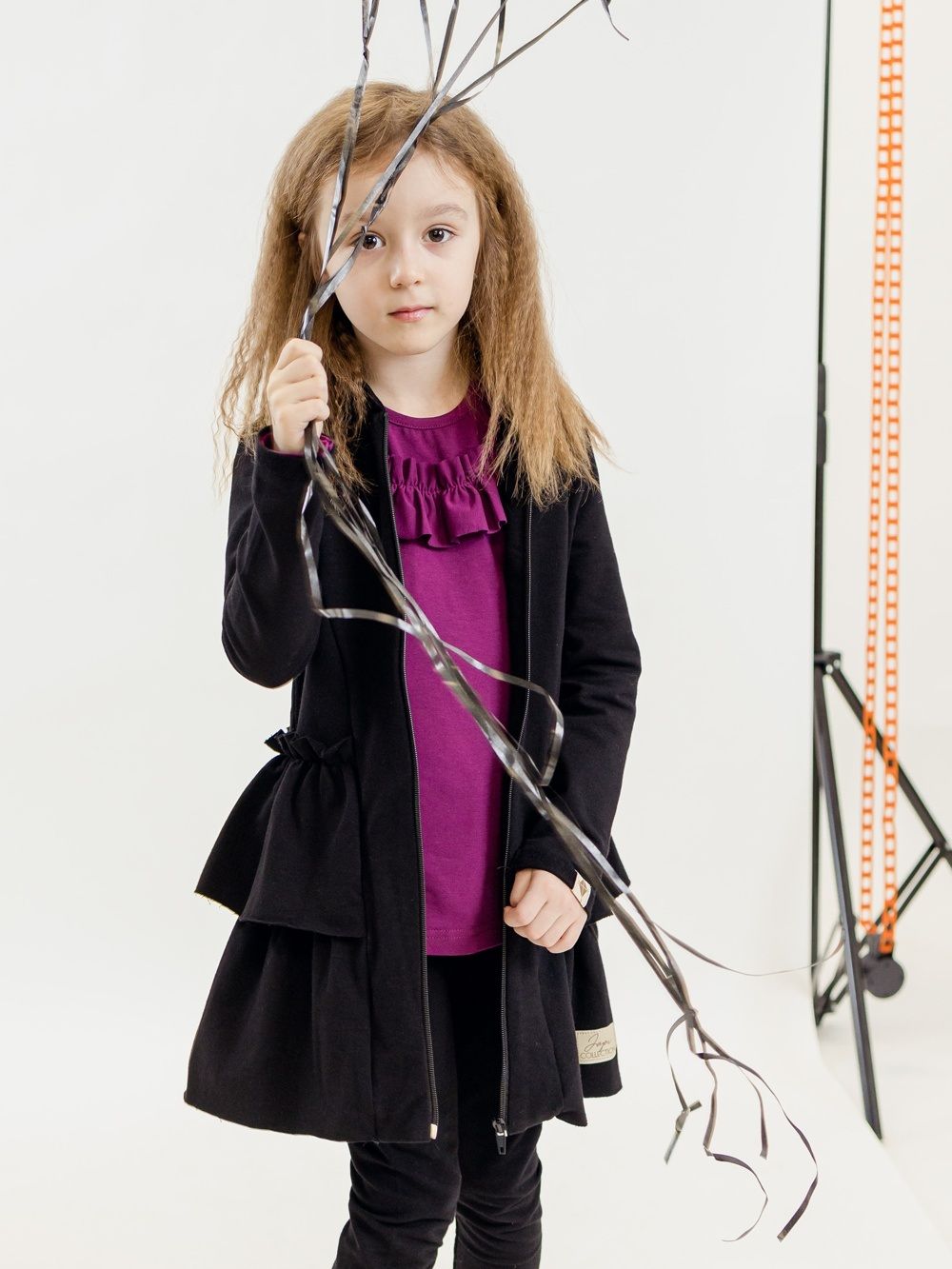 Ennek a szép pólónak a tetején díszes fodrokat helyeztünk el. A póló elegánsan néz ki, és alkalmas szoknyával vagy leggingsszel való kombinálásra. Használja családi összejövetelekhez vagy ünnepi alkalmakhoz. Fekete és lila színben található.