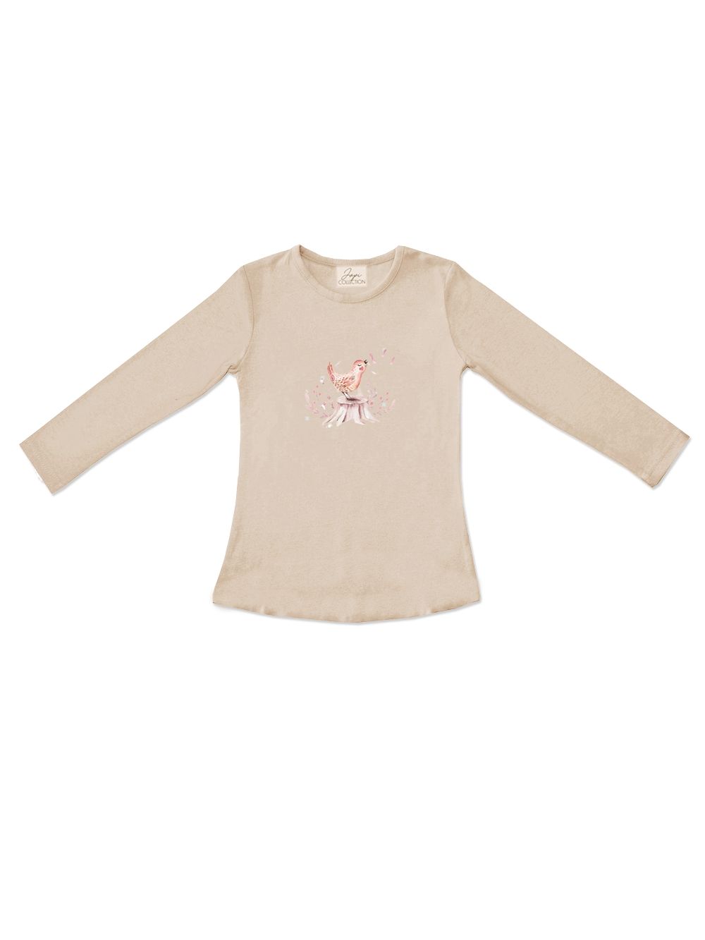 Ez a bájos, hosszú ujjú kislány póló kényelmes és stílusos darab, amelyet a kis divatkedvelők biztosan imádni fognak. Puha, kellemes anyagból készült, amely kíméletes a gyermek bőréhez, így ideális a mindennapi viseléshez. Az elejét egy romantikus, éneklő madarat ábrázoló minta díszíti, amely finom és egyedi megjelenést kölcsönöz a pólónak. A hosszú ujj kényelmet nyújt a hűvösebb napokon, így tavasszal, ősszel és télen is tökéletes választás. Három univerzális és gyönyörű színben – bézs, fehér és málnaszín – kapható, és könnyen kombinálható leggingsszel, szoknyával vagy farmerrel. Ideális darab mindennapi viselethez és különleges alkalmakra egyaránt, amikor a kis hercegnő kényelmesen, de stílusosan szeretne kinézni.