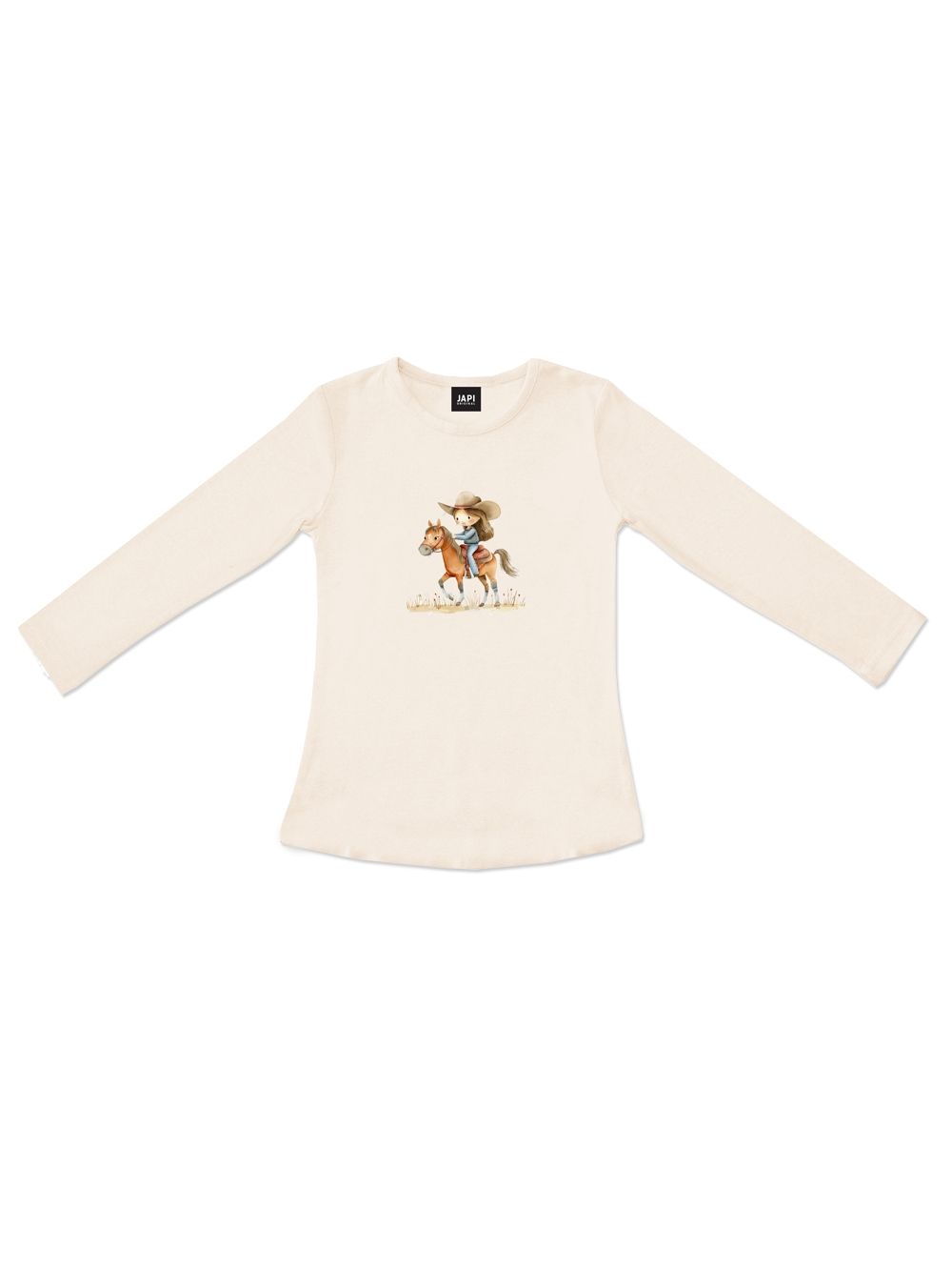 A WESTERN hosszú ujjú lányka póló egy stílusos darab, amely minden kis lórajongónak örömet szerez. Elejét egy eredeti illusztráció díszíti, amely egy lovon ülő kislányt ábrázol, így játékos és western hangulatot kölcsönöz a pólónak. Puha és kellemes anyagból készült, amely egész napos kényelmet és szabad mozgást biztosít. A hosszú ujjak ideálissá teszik az átmeneti és hűvösebb napokra is. Három finom árnyalatban kapható – bézs, fehér és púderrózsaszín –, amelyek könnyen kombinálhatók farmerrel, szoknyával vagy melegítőnadrággal. Tökéletes választás mindennapi viselethez, iskolába vagy családi kirándulásokhoz.