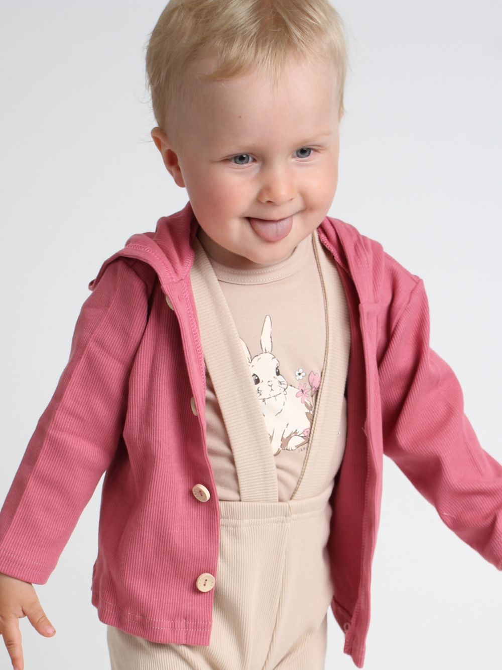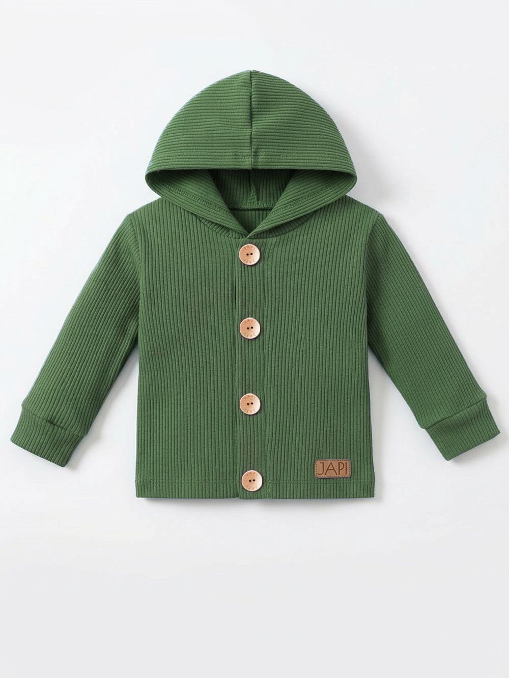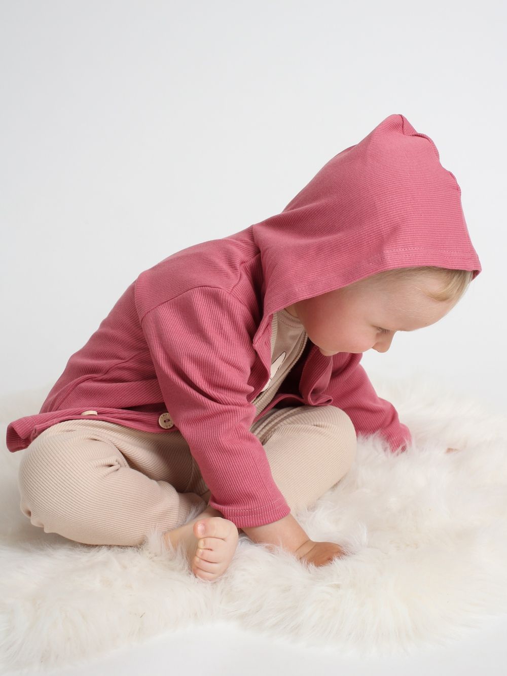 Ez a bordázott kapucnis gyermekpulóver tökéletes kiegészítője a gyermek ruhatárának. Kiváló minőségű pamutanyagból készült, amely kíméletes a bőrhöz és légáteresztő. A kapucni extra védelmet nyújt a hideg ellen, míg a fa gombok természetes és minimalista megjelenést biztosítanak. A bordázott textúra modern hatást kölcsönöz, miközben a rugalmasság maximális kényelmet nyújt. A GOOSE kollekció többi darabjával tökéletesen kombinálható, így harmonikus szetteket hozhatsz létre. Ideális mindennapi viseletre és hűvösebb napokra.