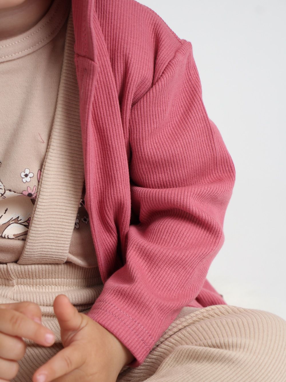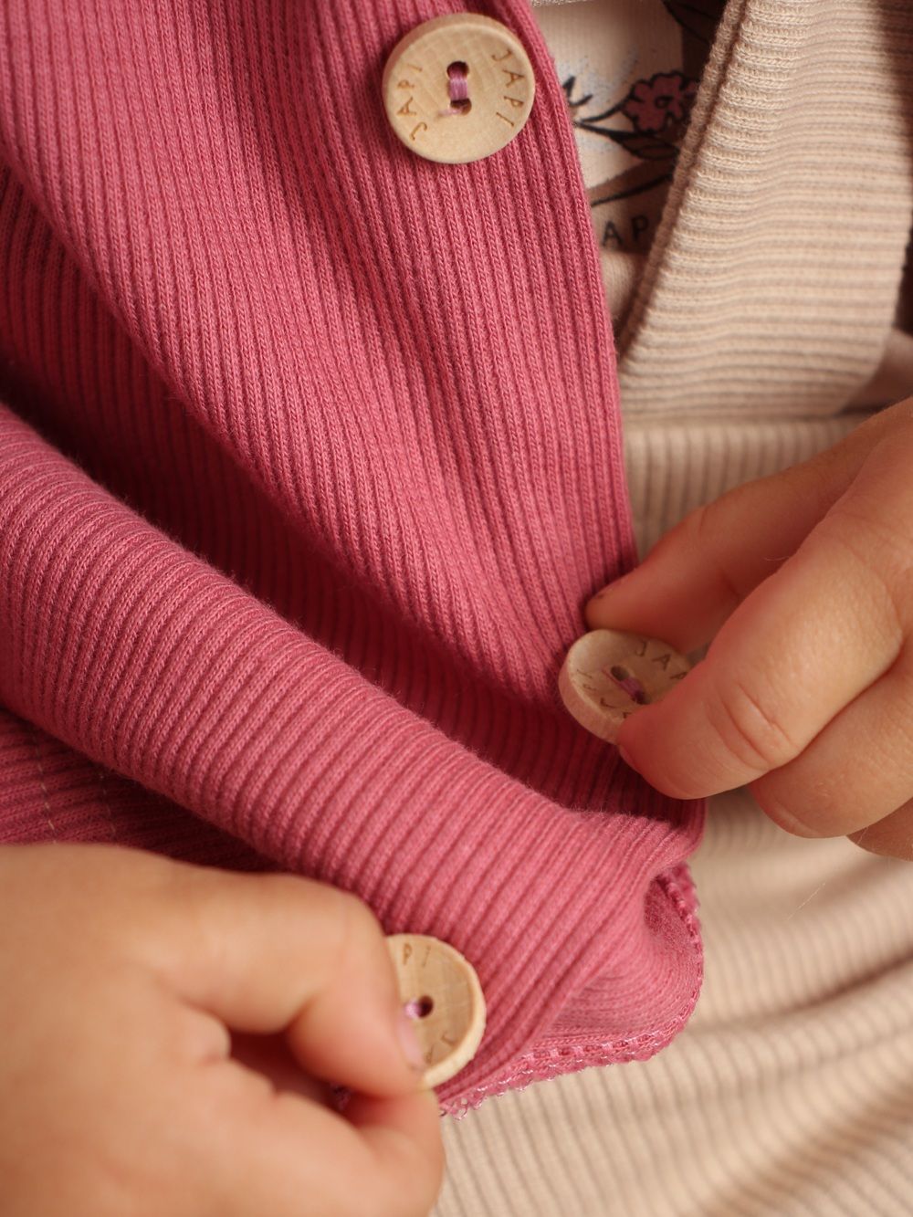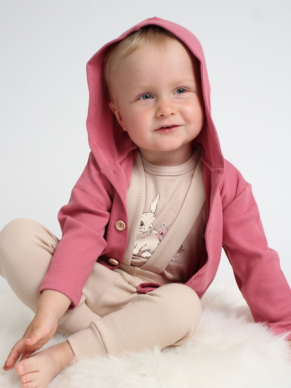 Ez a bordázott kapucnis gyermekpulóver tökéletes kiegészítője a gyermek ruhatárának. Kiváló minőségű pamutanyagból készült, amely kíméletes a bőrhöz és légáteresztő. A kapucni extra védelmet nyújt a hideg ellen, míg a fa gombok természetes és minimalista megjelenést biztosítanak. A bordázott textúra modern hatást kölcsönöz, miközben a rugalmasság maximális kényelmet nyújt. A GOOSE kollekció többi darabjával tökéletesen kombinálható, így harmonikus szetteket hozhatsz létre. Ideális mindennapi viseletre és hűvösebb napokra.