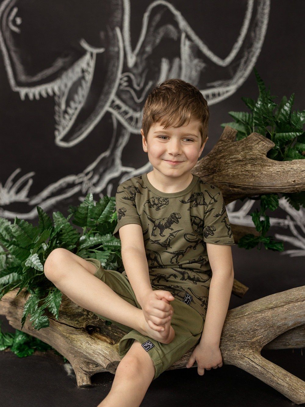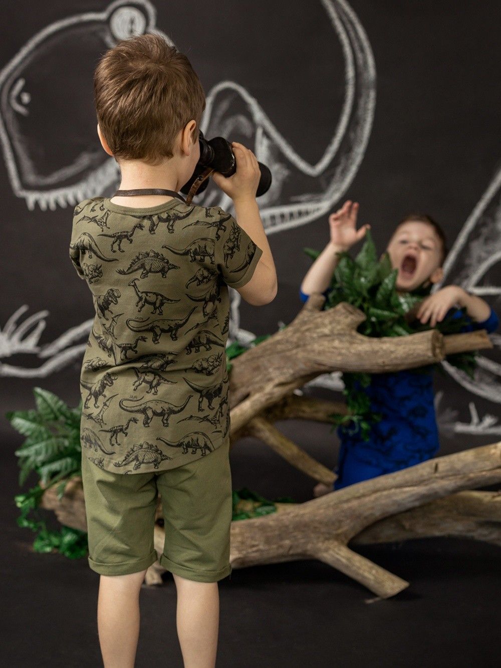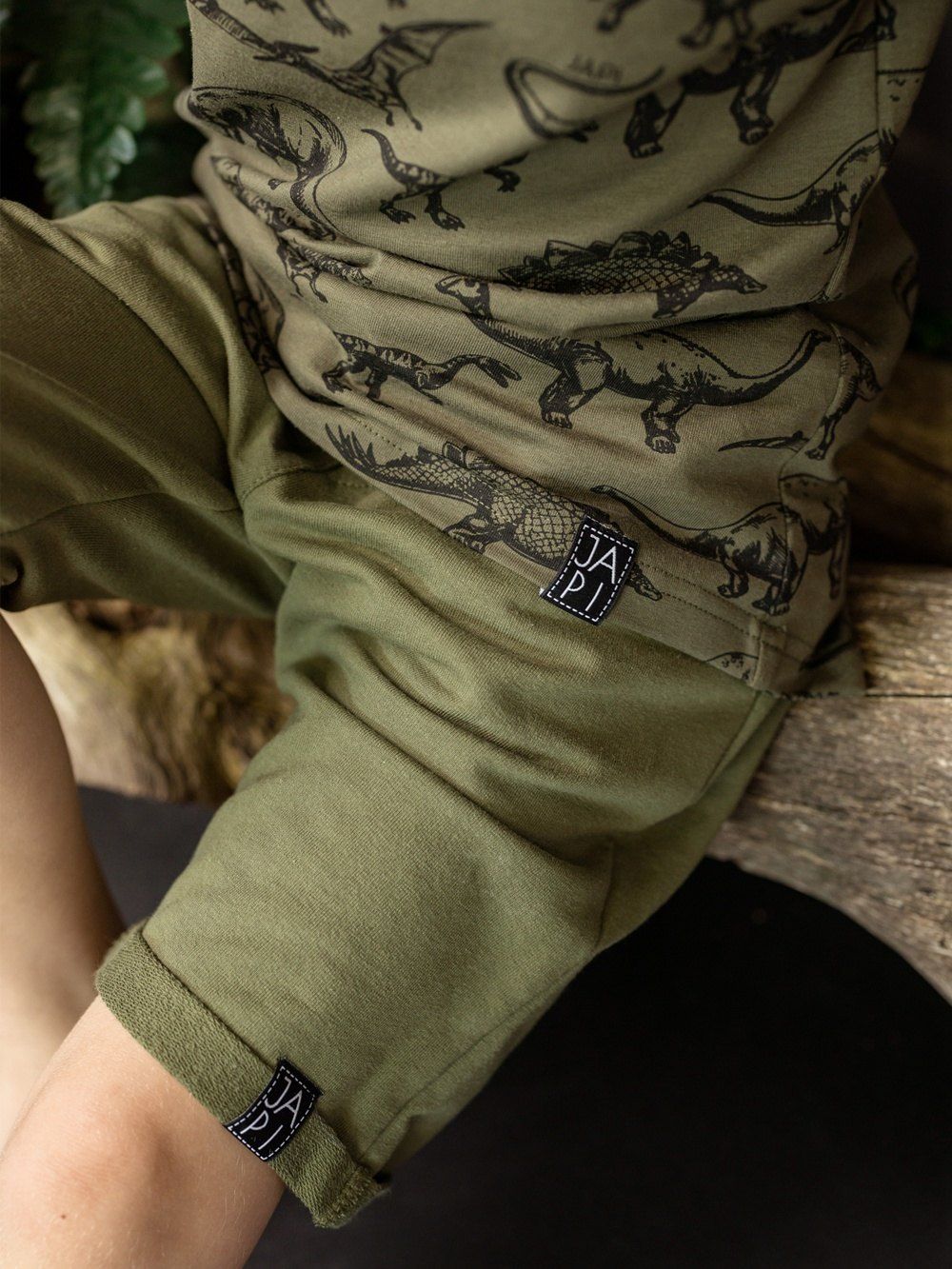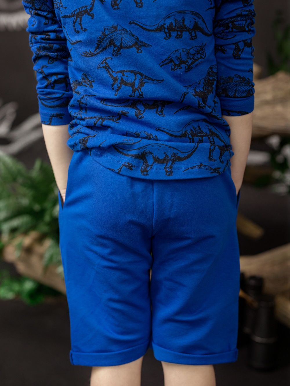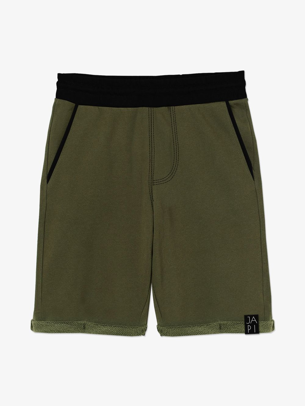 Kényelmes szabás oldalsó zsebekkel, amit a fiúk imádni fognak. Alkalmas a mindennapokra, iskolába vagy sétára. A rövidnadrág pamutszövetből készült. A derékrészen kényelmes gumipánttal rendelkeznek. Az egyszínű alapanyagot kontrasztos fekete elemek egészítik ki - zsebszegély, felvarrás és gumiszalag a derékrészen.