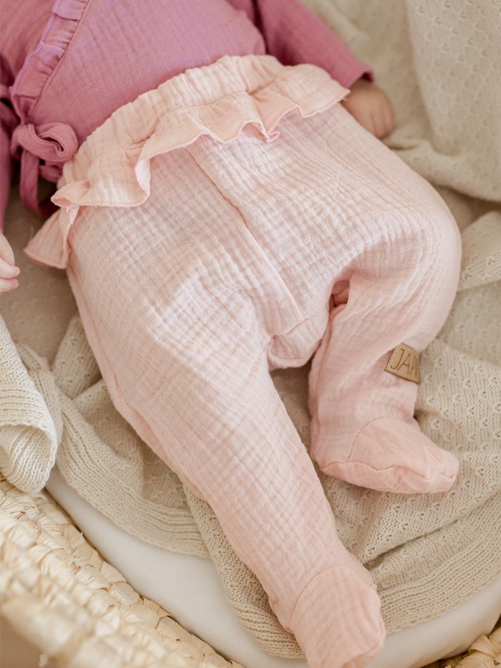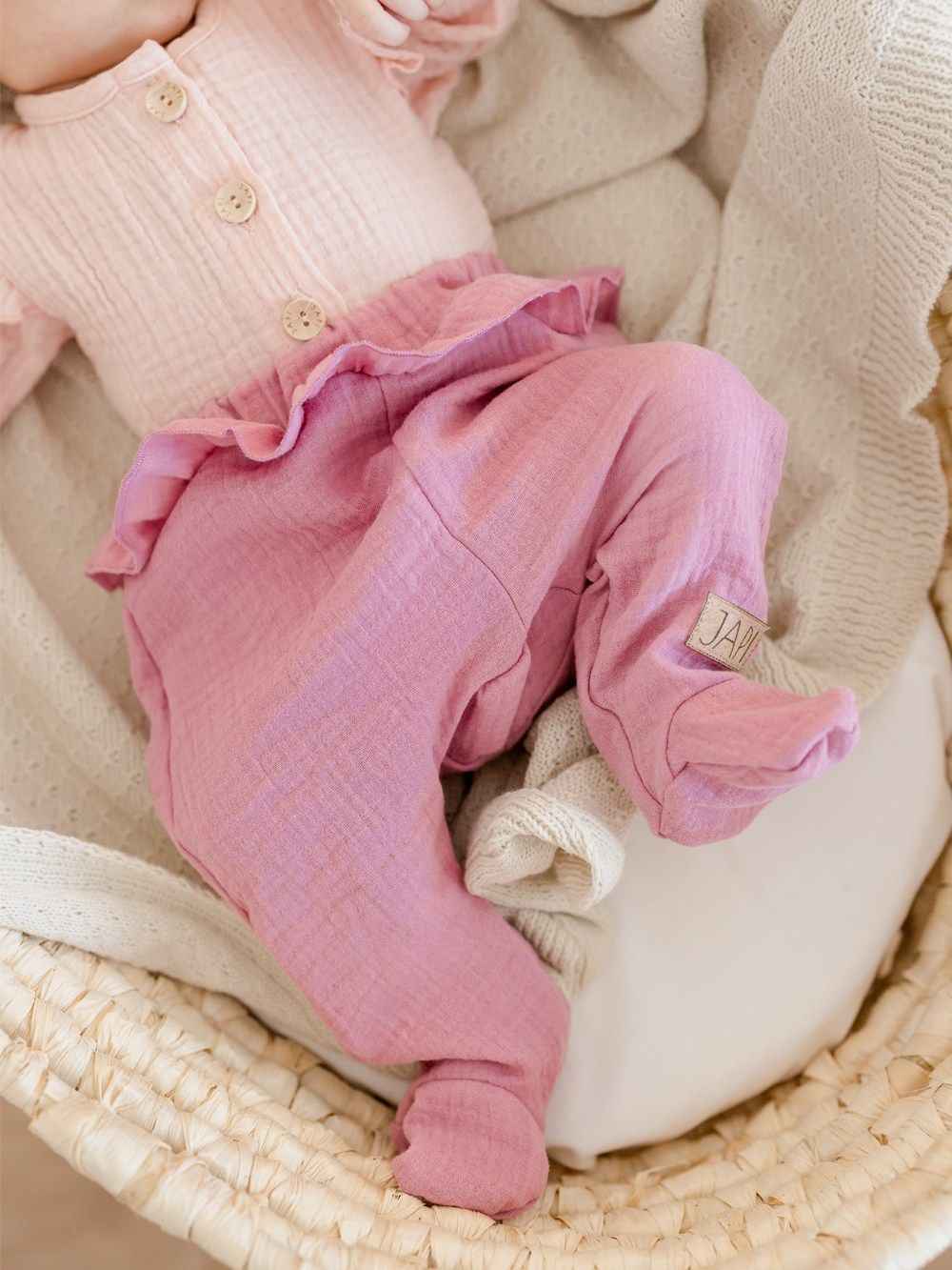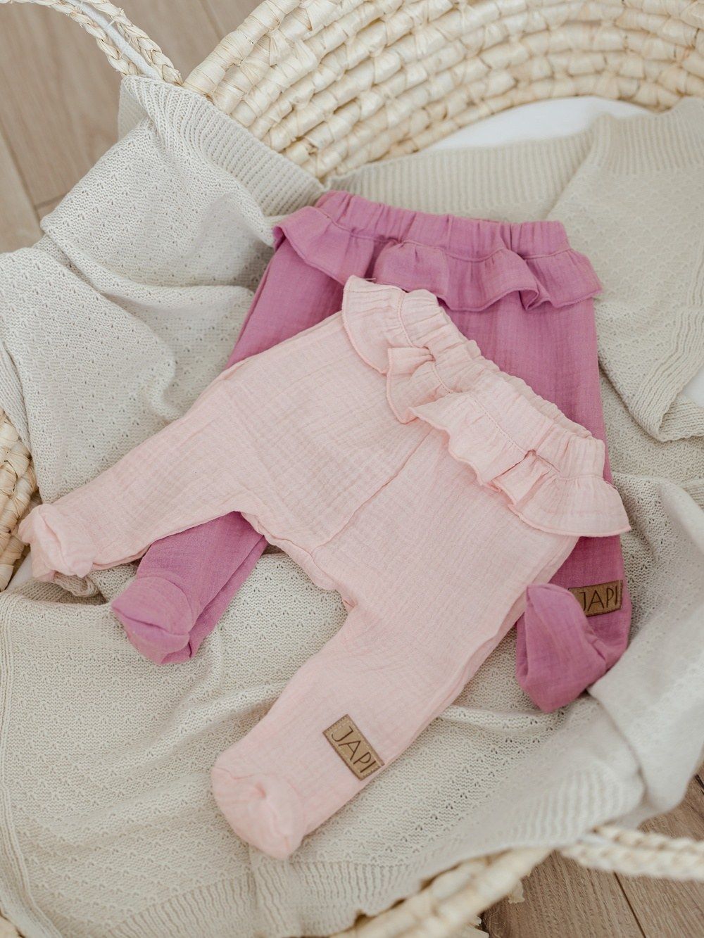 Muszlin rugdalózó nadrág két gyönyörű színben a legkisebb lányoknak.