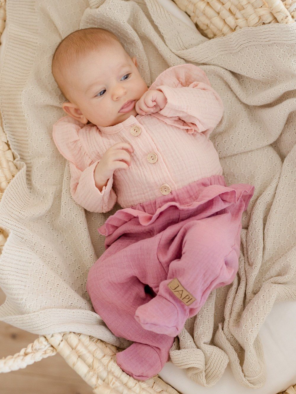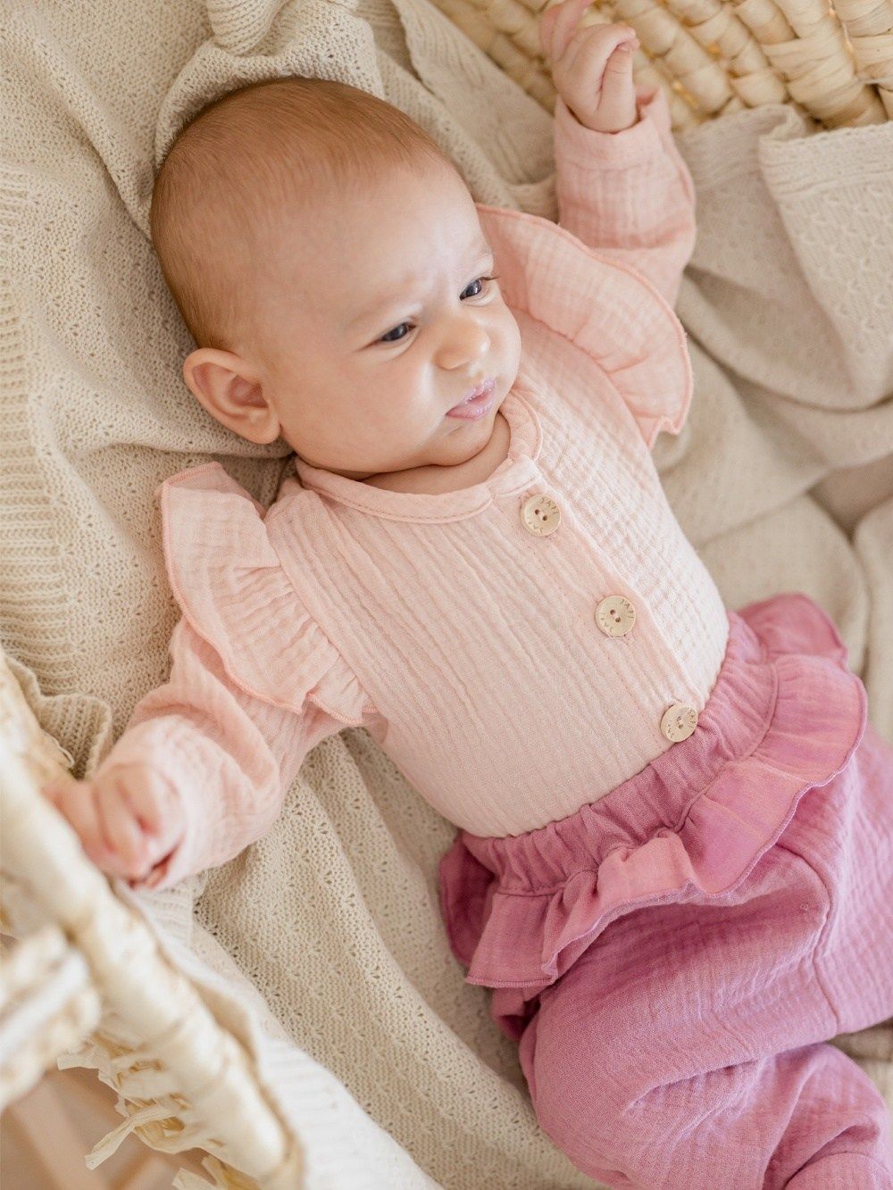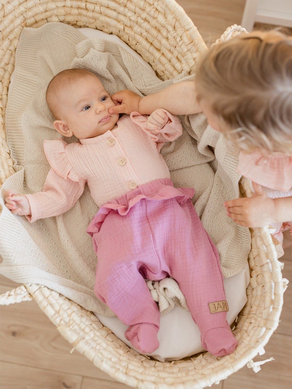 Muszlin rugdalózó nadrág két gyönyörű színben a legkisebb lányoknak.