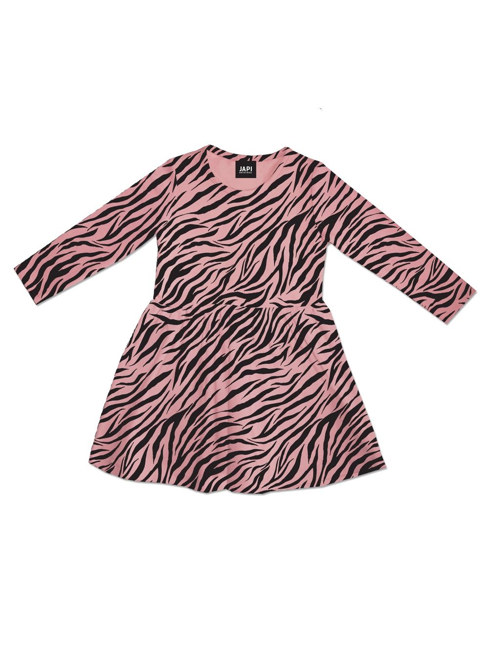 Ez a hosszú ujjú kislány ruha látványos zebramintával tökéletes választás a kis divatkedvelőknek, akik szeretik a játékos és merész stílust. Puha, rugalmas pamut anyagból készült, amely kényelmet és mozgásszabadságot biztosít egész napra. Az A-vonalú szabás pörgős, kislányos sziluettet ad a ruhának, amit a gyerekek imádnak. A zebraminta modern és magabiztos megjelenést kölcsönöz, így a ruha ideális hétköznapi viseletre vagy különleges alkalmakra is. Kapható fekete-fehér és rózsaszín-fekete változatban, amelyek könnyen kombinálhatók egyszínű harisnyával vagy legginggel. Része a ZEBRA kollekciónak a vagány kislányok számára.